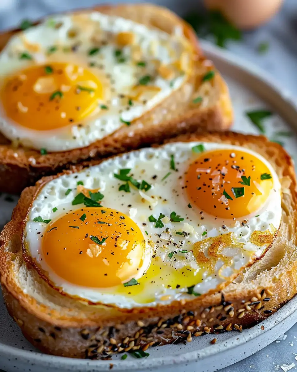 Now for the fun part! Gently crack an egg onto each slice of bread. If you prefer a firmer yolk, you might want to use a fork to poke it slightly, but if you love that runny yolk experience, leave it whole! Season the eggs generously with salt and pepper. If you want to add a bit more flair, consider sprinkling on some herbs or even a couple dashes of hot sauce for a delicious kick.