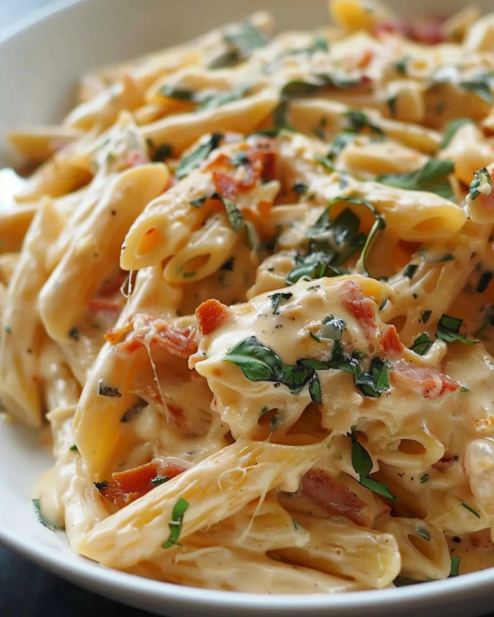 A vibrant and creamy pasta dish that combines the richness of turkey bacon with fresh Tuscan flavors, all cooked in one pot for simplicity and deliciousness.