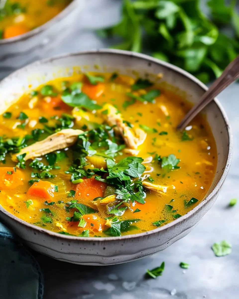 Imagine curling up with a warm bowl of this soup after a long day. The steam rises, filling your kitchen with a comforting aroma. With every spoonful, you’re nourishing your body while savoring the delightful mix of spices and tender chicken.