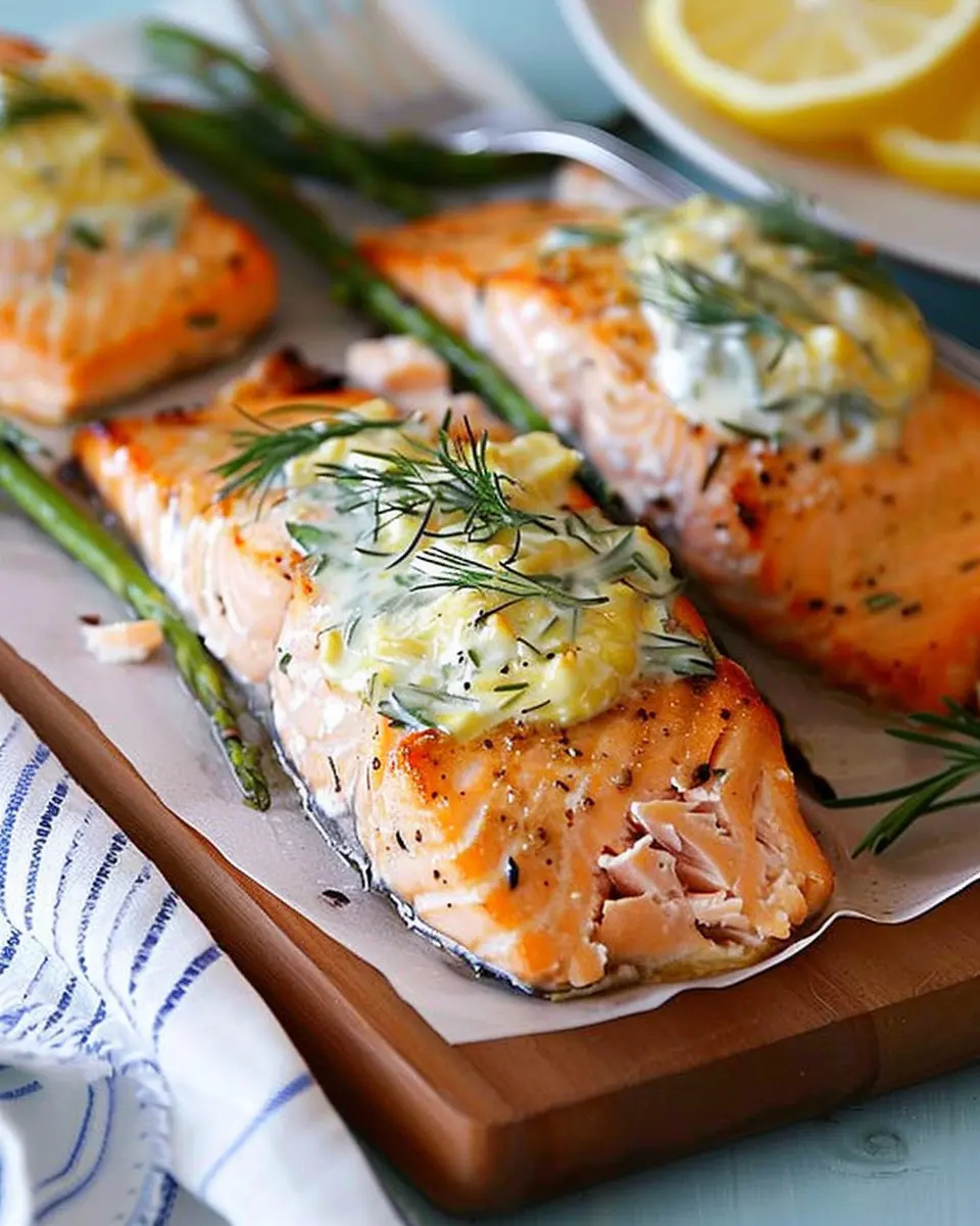 Once your salmon is fully baked and fragrant with those delightful herb notes, it’s time to add what I like to call the “finishing touch.” If you have any leftover Boursin mixture, don’t hesitate to dollop a bit more on the top of each fillet. This not only elevates the dish’s visual appeal but reinforces that luxurious flavor we adore so much.