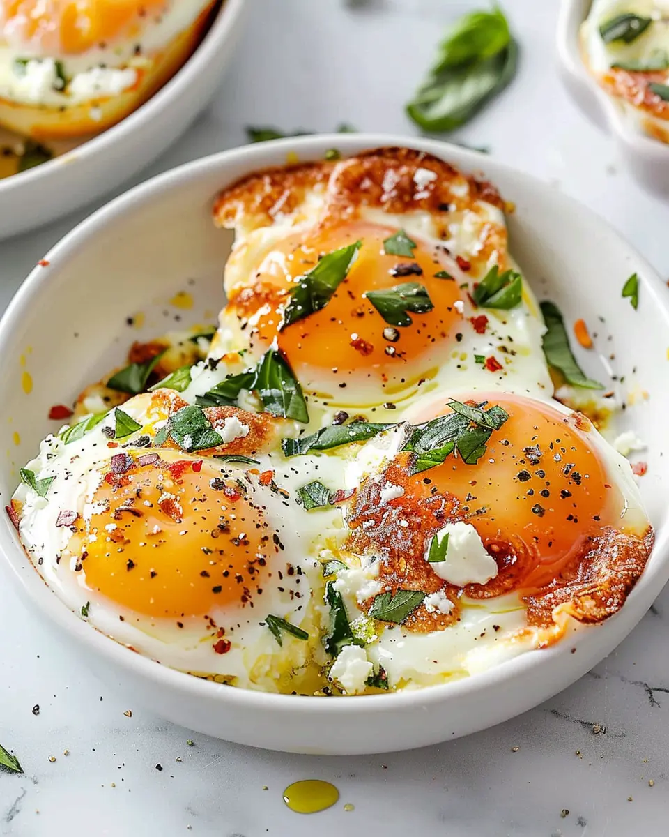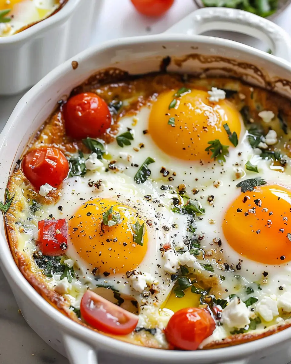 Baked Feta Eggs are a delicious and easy breakfast option that combines creamy feta and perfectly baked eggs for a delightful start to your day.