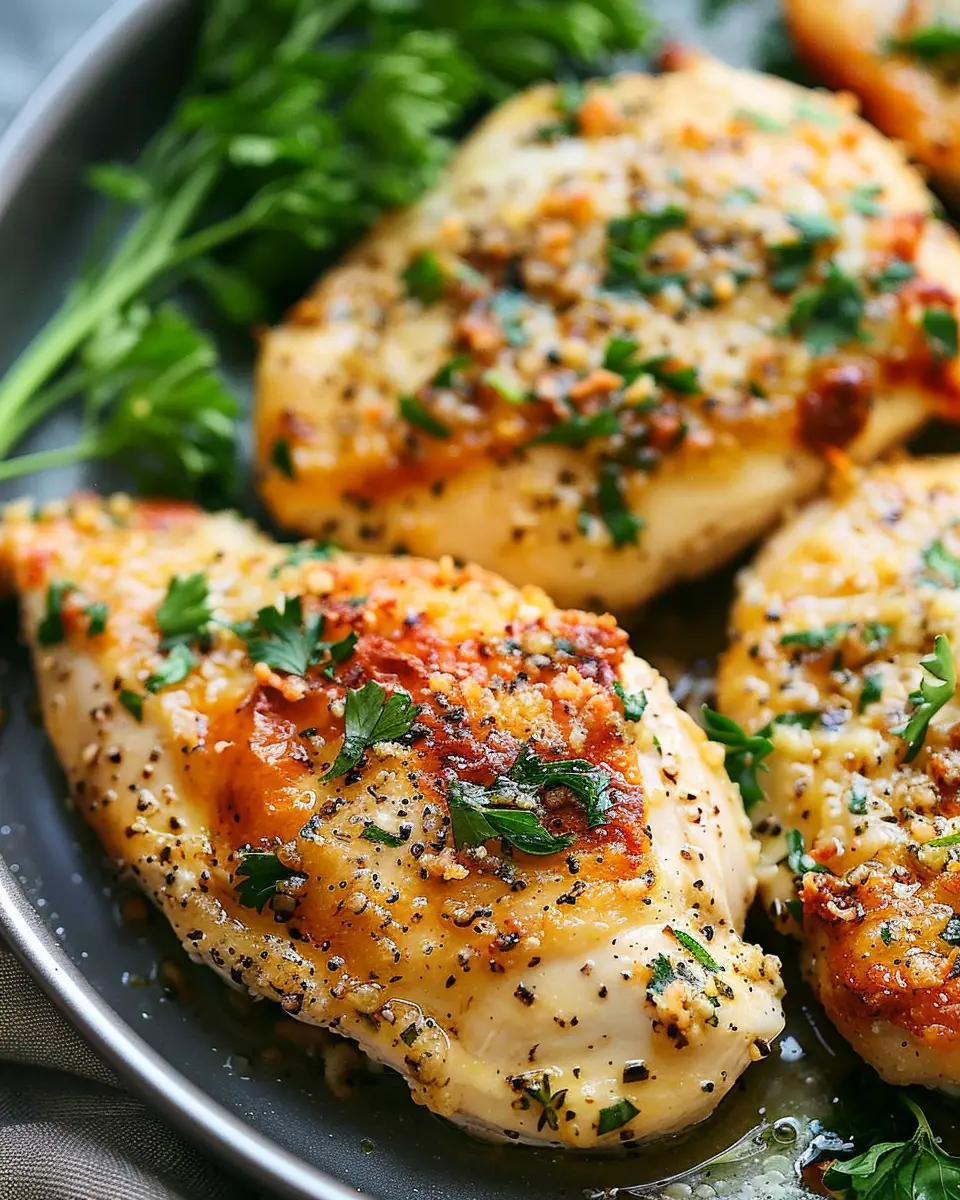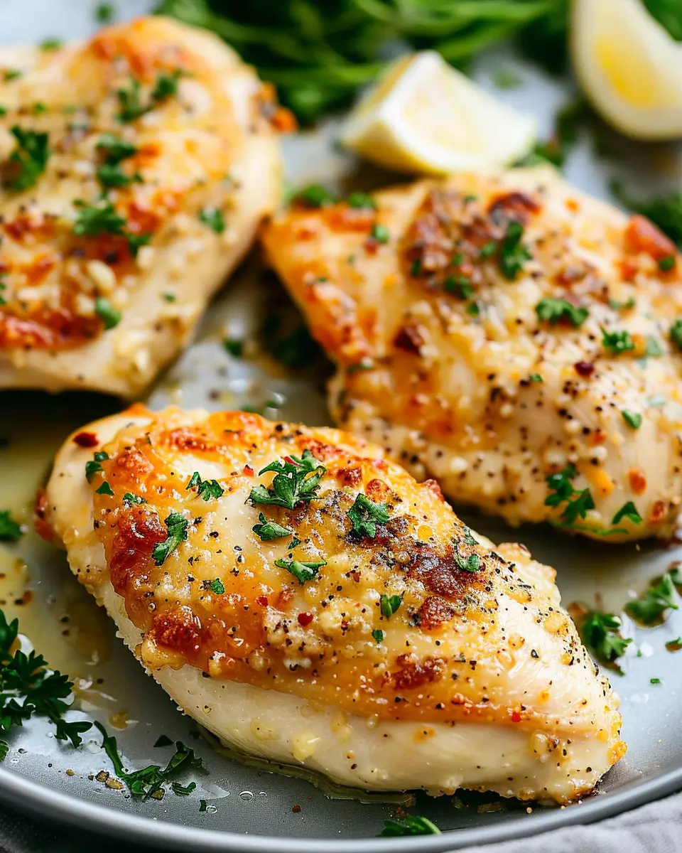 To add a touch of elegance, consider garnishing your Baked Parmesan Garlic Chicken with freshly chopped parsley or a sprinkle of extra Parmesan cheese. A squeeze of lemon can also brighten the dish.
