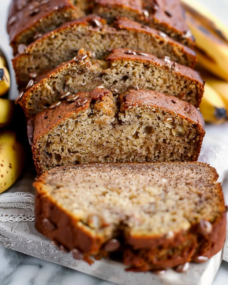 - Cool Before Slicing: Once baked, allow the banana bread to cool in the pan for about 10 minutes before transferring it to a wire rack. Let it cool completely to make slicing easier.