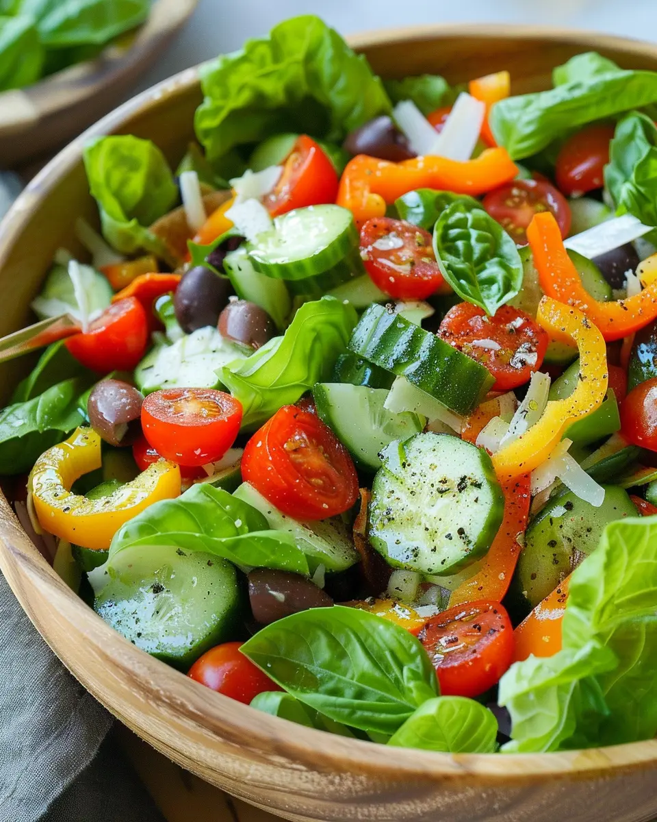 If you’re looking to switch things up, a vegetarian big Italian salad can be just as satisfying and full of flavor. Start with a base of crisp romaine or mixed greens, then add a colorful array of vegetables like cherry tomatoes, cucumbers, and bell peppers. For that hearty touch, toss in some roasted chickpeas or a sprinkle of toasted sunflower seeds.