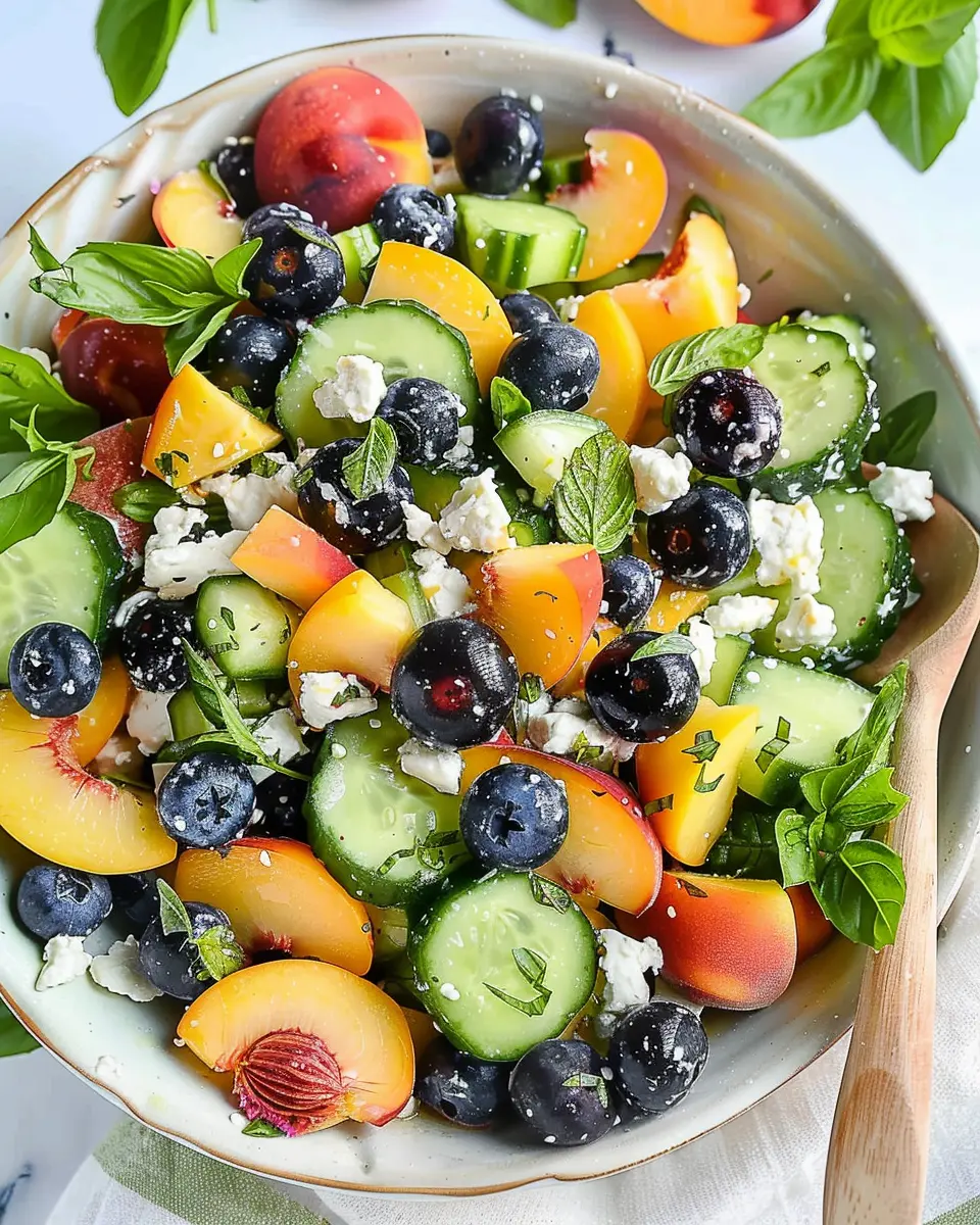 PrintBlueberry Cucumber Salad: Easy Summer Delight with Peaches and Goat Cheese