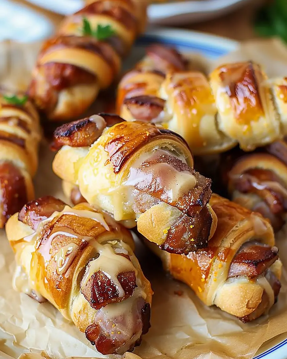 PrintBreakfast Pigs in a Blanket: Easy Turkey Bacon & Chicken Ham Delight