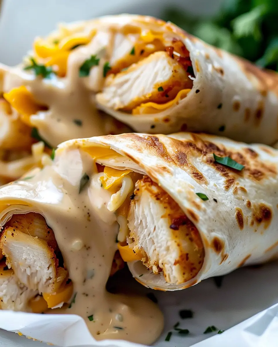 Now, your Cheesy Garlic Chicken Wraps are ready to be devoured! Pair them with a fresh salad or your favorite dipping sauce—like a creamy ranch or zesty salsa—for a complete meal. Enjoy the process, share with friends, and let your culinary creativity shine!