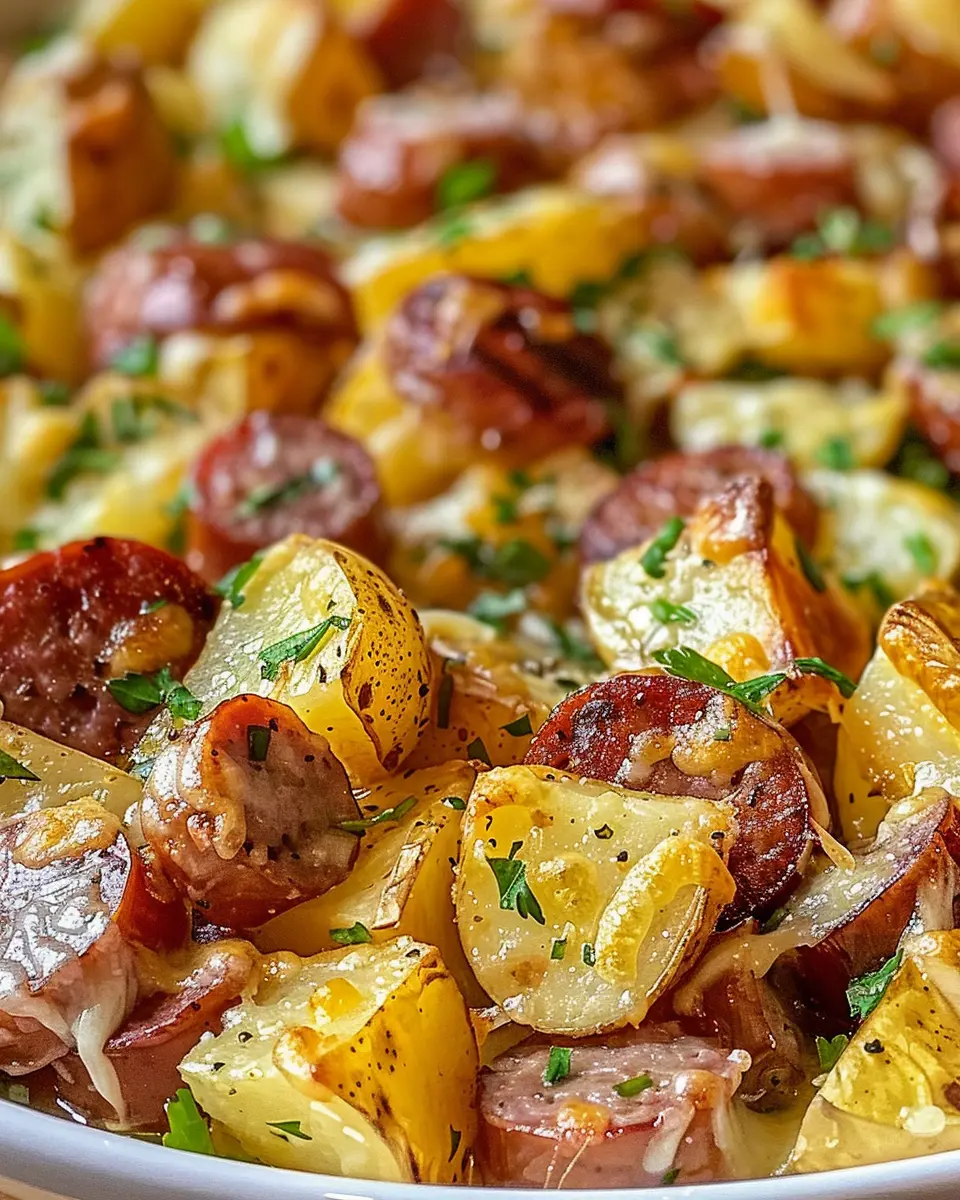In summary, Cheesy Ranch Potatoes and Smoked Sausage Delight is not just a meal; it’s an experience that brings warmth and satisfaction to the table. The combination of creamy potatoes, savory smoked sausage, and zesty ranch flavors makes for a dish that’s both hearty and comforting. Whether you’re hosting a gathering or just enjoying a cozy night in, this dish is sure to impress.