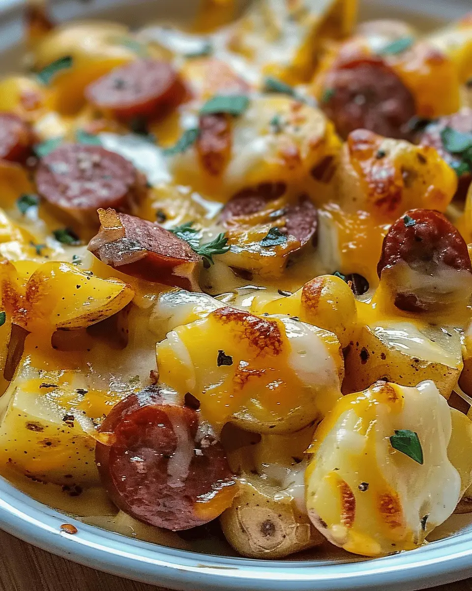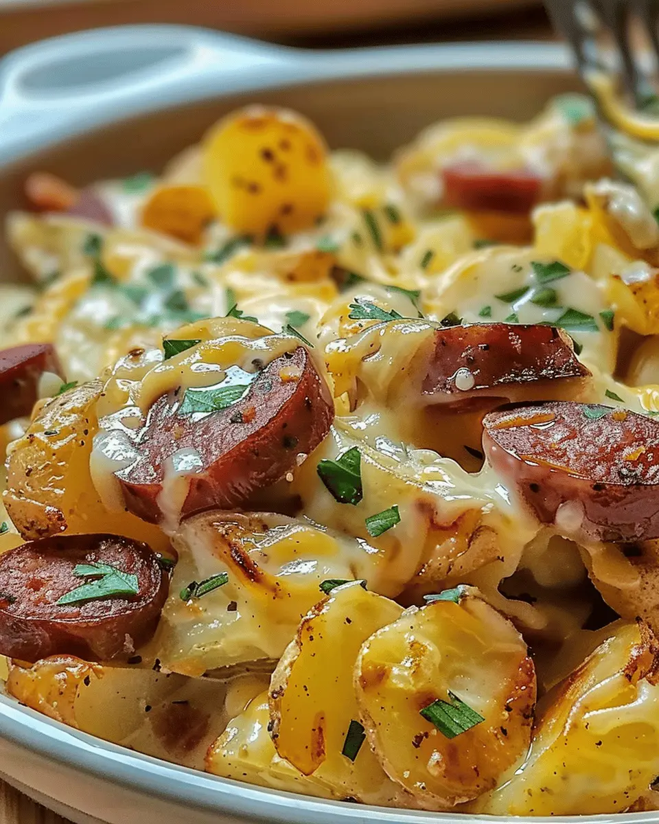 PrintCheesy Ranch Potatoes: Indulgent Dish with Smoked Sausage Delight