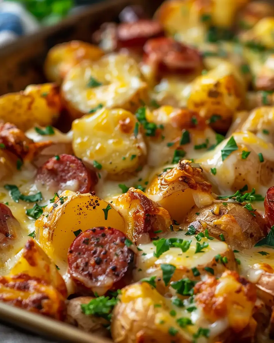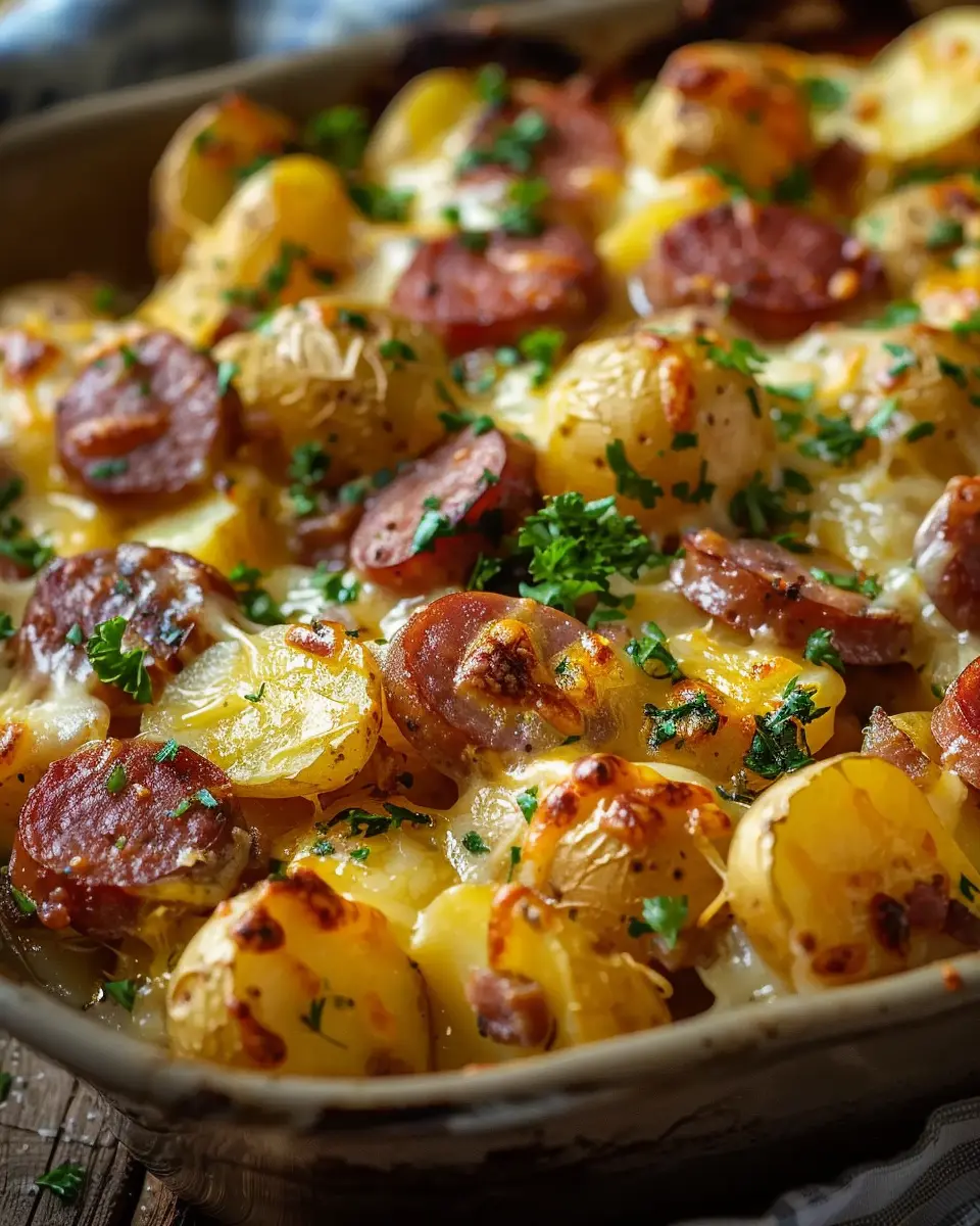 Keywords: Cheesy Ranch Potatoes, Smoked Sausage, Cozy Dinner