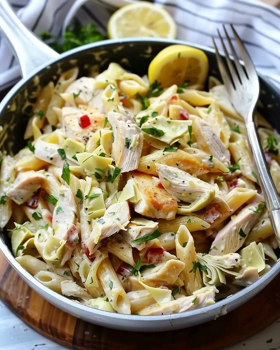 Garnish with fresh parsley for a pop of color and serve hot. This Chicken and Artichoke Lemon Pasta will not just be a meal; it will be an experience.