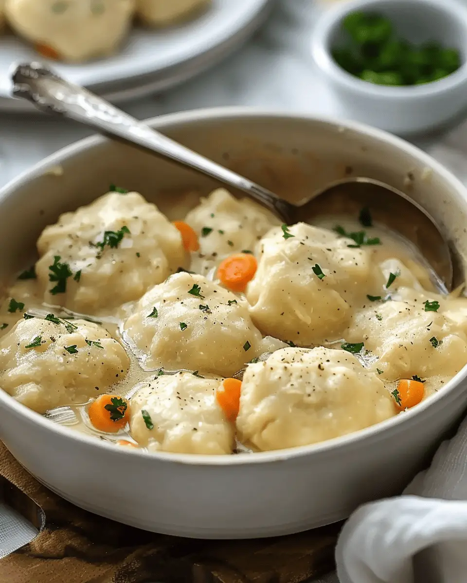 These ingredients come together to create soft, pillowy dumplings that soak up the delicious chicken soup! When you combine all these elements, you not only satisfy your taste buds but also create a heartwarming dish that feels like home.
