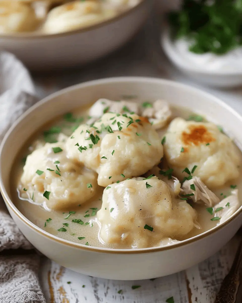 In the South, dumplings often take on a plush, velvety texture that perfectly complements savory, seasoned chicken. For a classic Southern-style experience:
