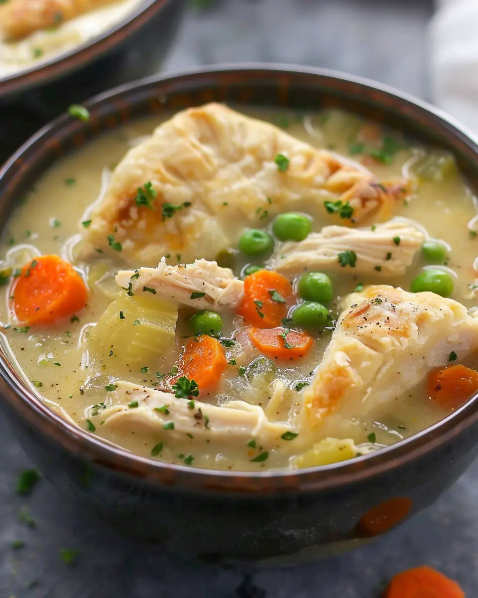 Chicken Pot Pie Soup is a comforting dish that combines the classic flavors of pot pie with a creamy soup base.