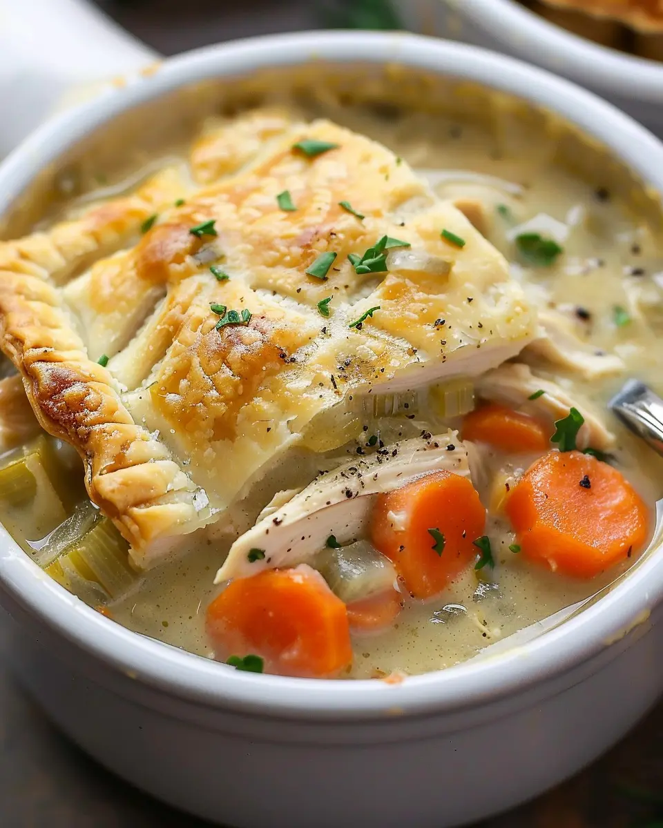 Chicken Pot Pie Soup is a comforting dish that combines the classic flavors of pot pie with a creamy soup base.