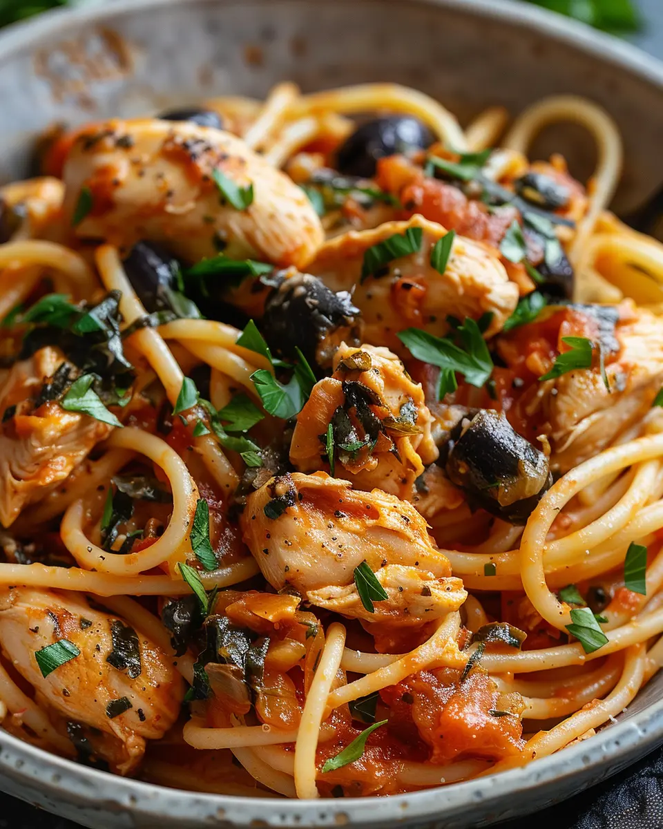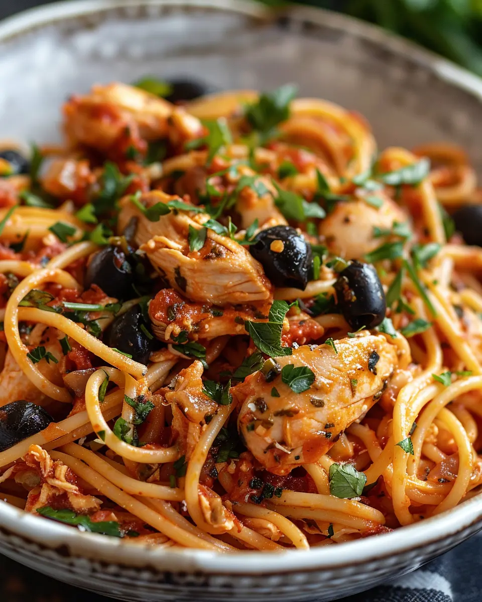 PrintChicken Puttanesca Pasta: Easy & Flavorful Twist with Turkey Bacon