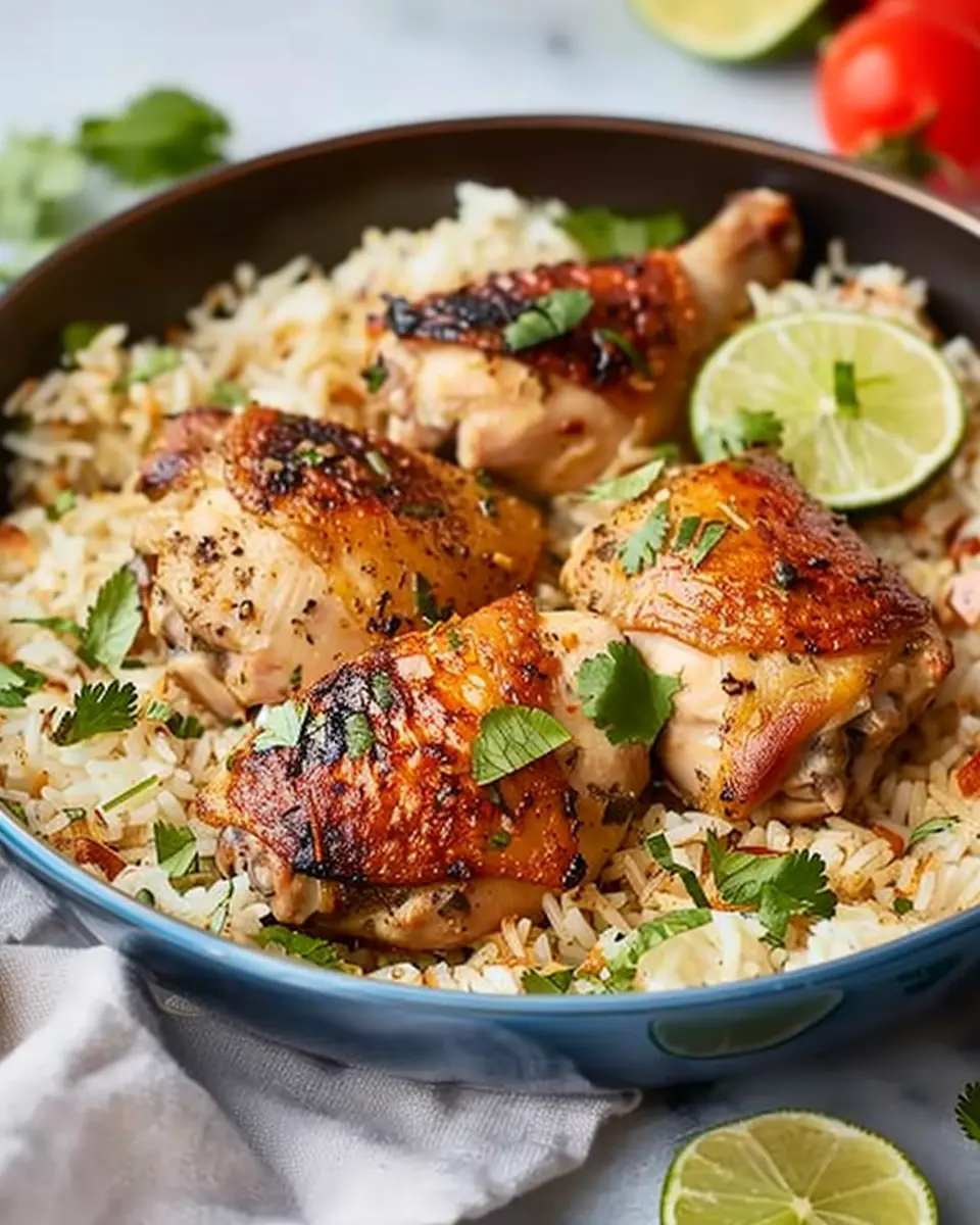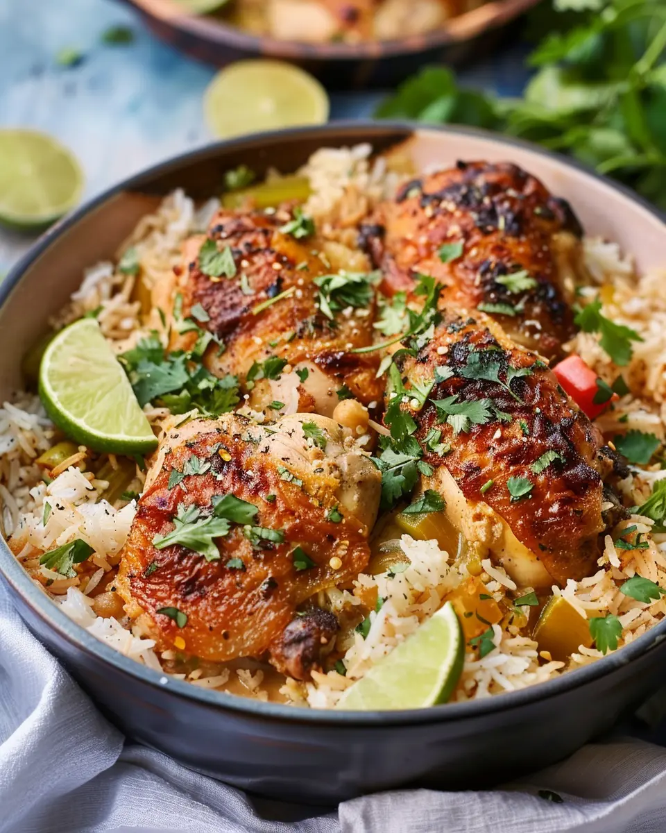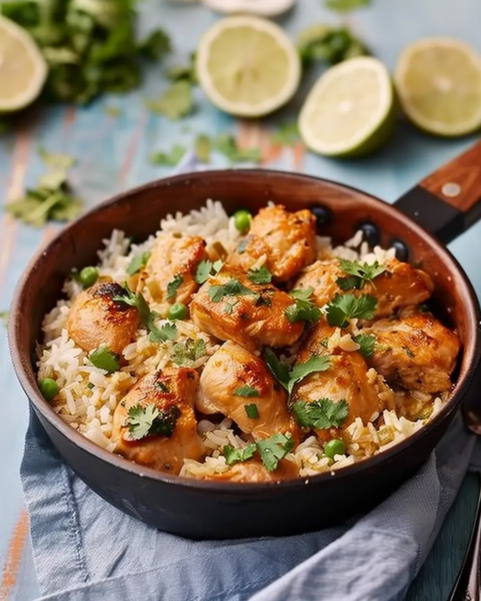 A delicious and comforting dish that combines tender chicken with creamy coconut rice.