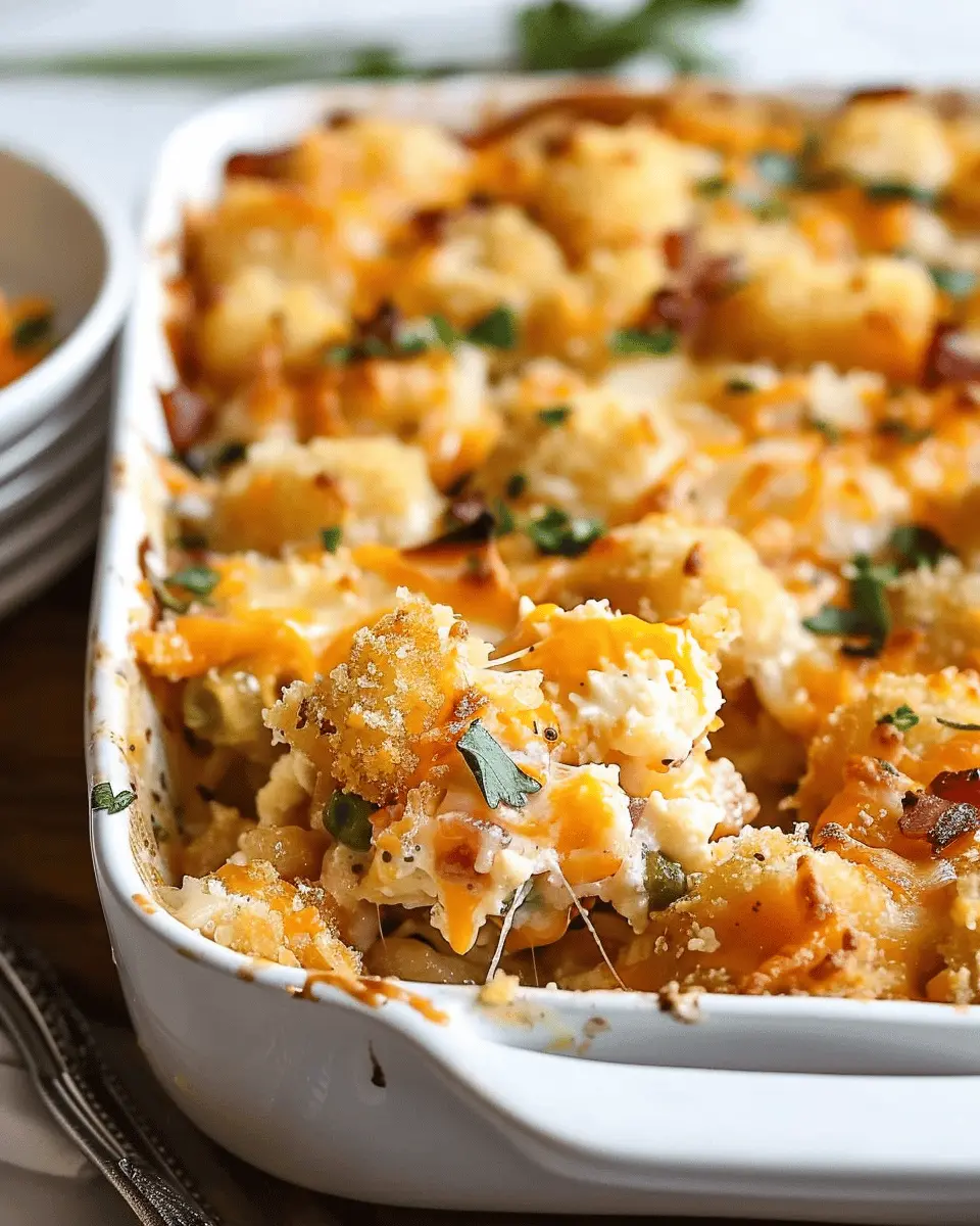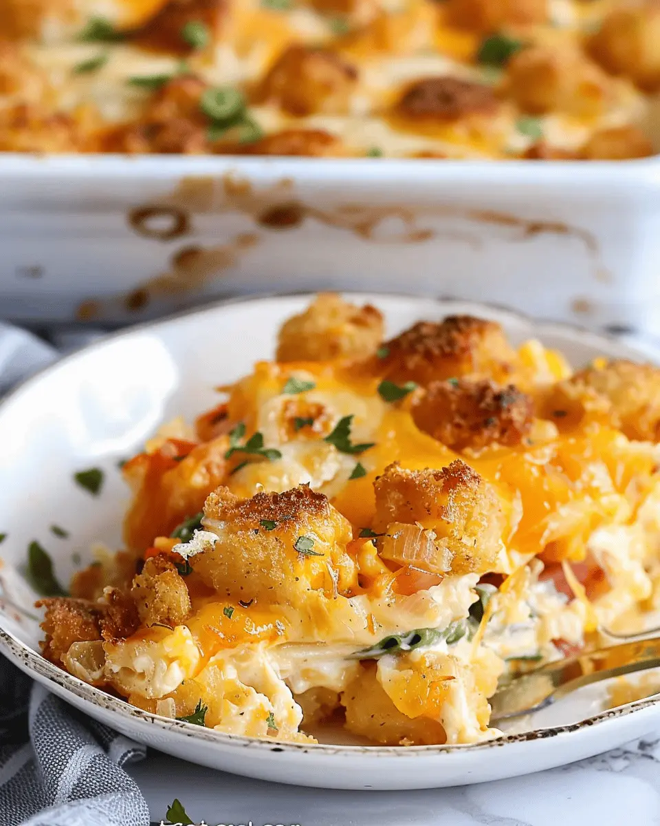 Absolutely! One of the best aspects of cracked out tater tot breakfast casserole is its adaptability. You can prepare it the night before and let it sit in the fridge. Just assemble the casserole, cover it with foil, and refrigerate. In the morning, bake it straight from the fridge, adding a few extra minutes to the cooking time. This makes breakfast entertaining or busy mornings so much easier.
