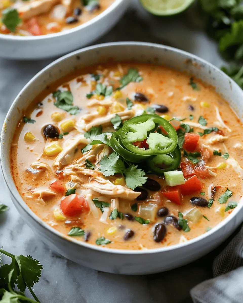 In conclusion, Creamy Chicken Enchilada Soup is your go-to solution for a cozy, satisfying dinner when time is tight. This dish combines tender chicken, rich flavors, and creamy textures that warm the soul. It’s easy to customize with your favorite toppings like avocado, cilantro, or even a sprinkle of lime for zing. When you have a busy evening ahead, this soup is a simple yet impressive choice that delights the taste buds. So why not whip up a batch tonight? Check out more delicious chicken recipes to keep your meals exciting!