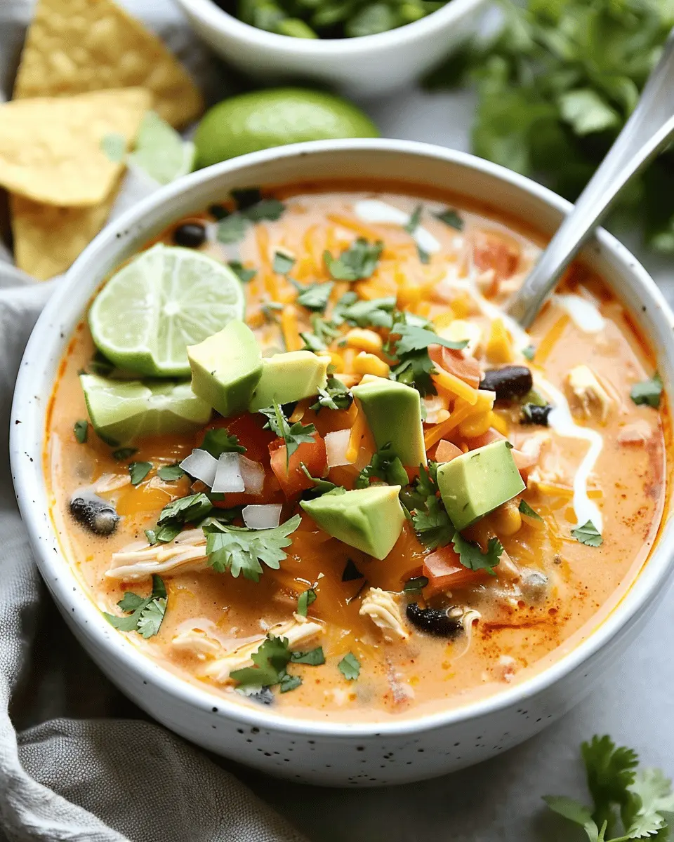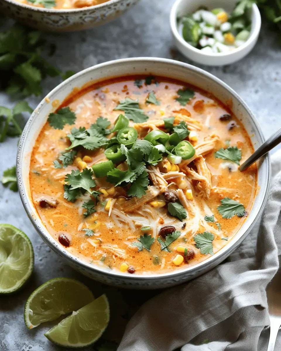 In conclusion, Creamy Chicken Enchilada Soup is your go-to solution for a cozy, satisfying dinner when time is tight. This dish combines tender chicken, rich flavors, and creamy textures that warm the soul. It’s easy to customize with your favorite toppings like avocado, cilantro, or even a sprinkle of lime for zing. When you have a busy evening ahead, this soup is a simple yet impressive choice that delights the taste buds. So why not whip up a batch tonight? Check out more delicious chicken recipes to keep your meals exciting!