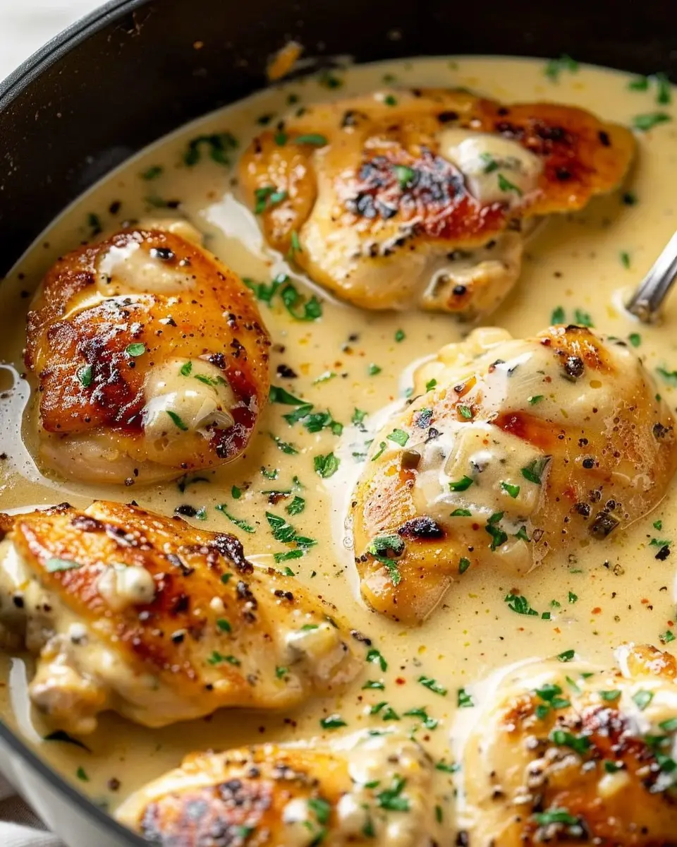 • Layered Presentation: Serve the chicken atop a mound of garlic mashed potatoes and drizzle the creamy sauce artfully over it.