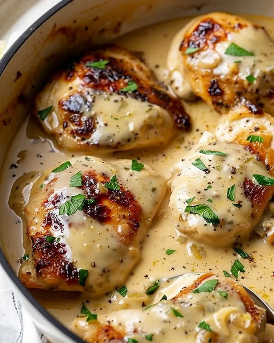 A delightful and comforting creamy garlic chicken recipe that’s perfect for dinner.