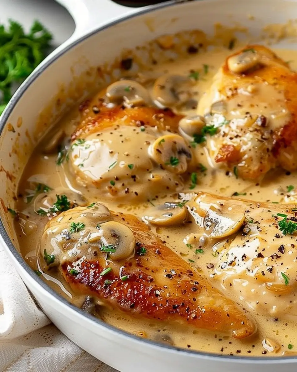 A delightful and comforting creamy garlic chicken recipe that’s perfect for dinner.