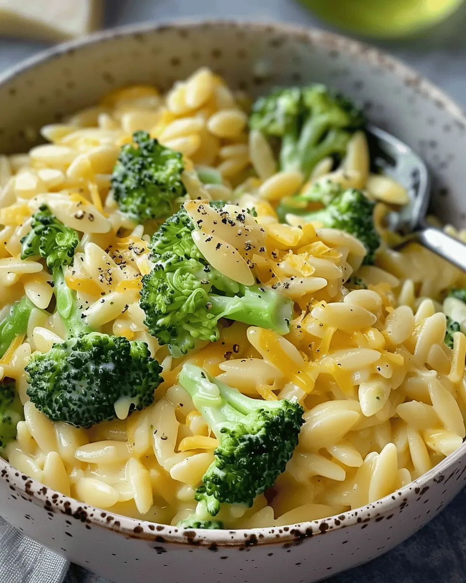 PrintCreamy One-Pot Broccoli Cheddar Orzo: Easy Comfort Food Delight