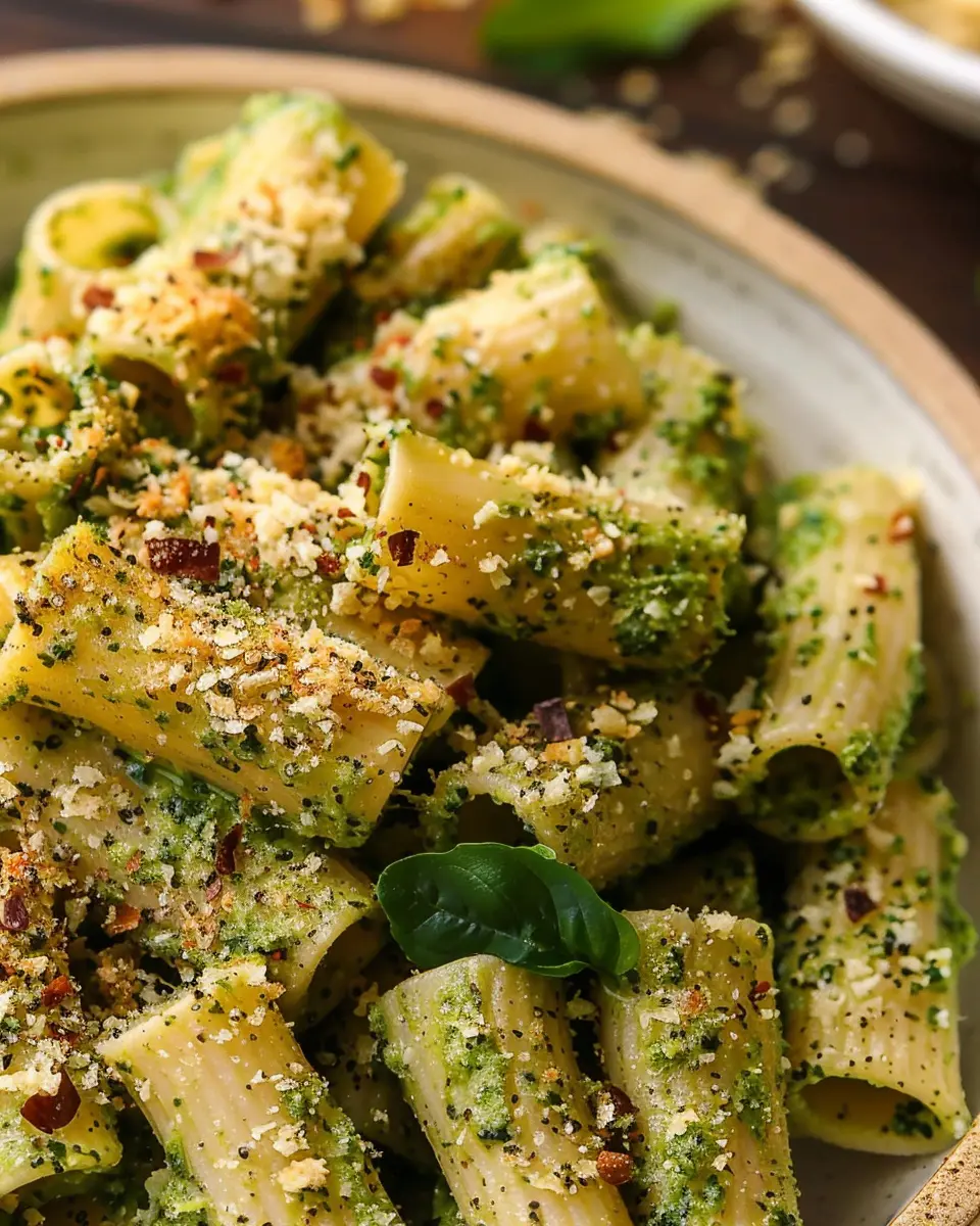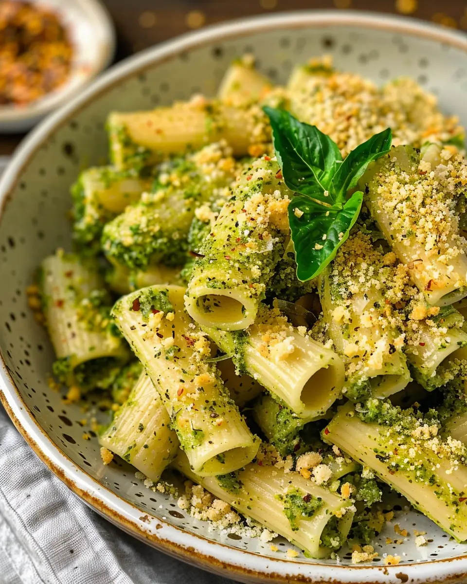 PrintCreamy Pesto Rigatoni with Chili Garlic Breadcrumbs: A Cozy Delight