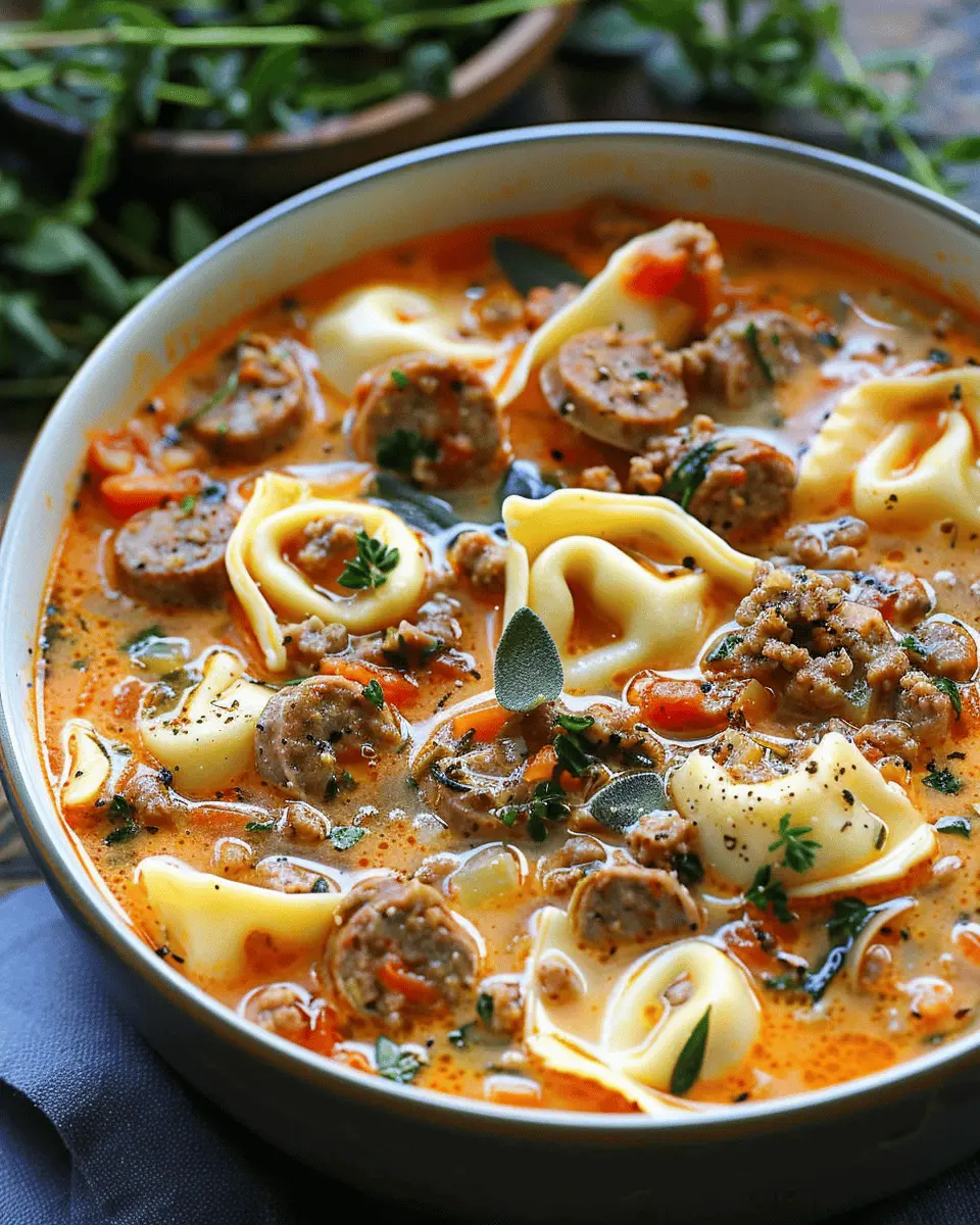 Keywords: Creamy Sausage Tortellini Soup, comfort dish, cozy soup