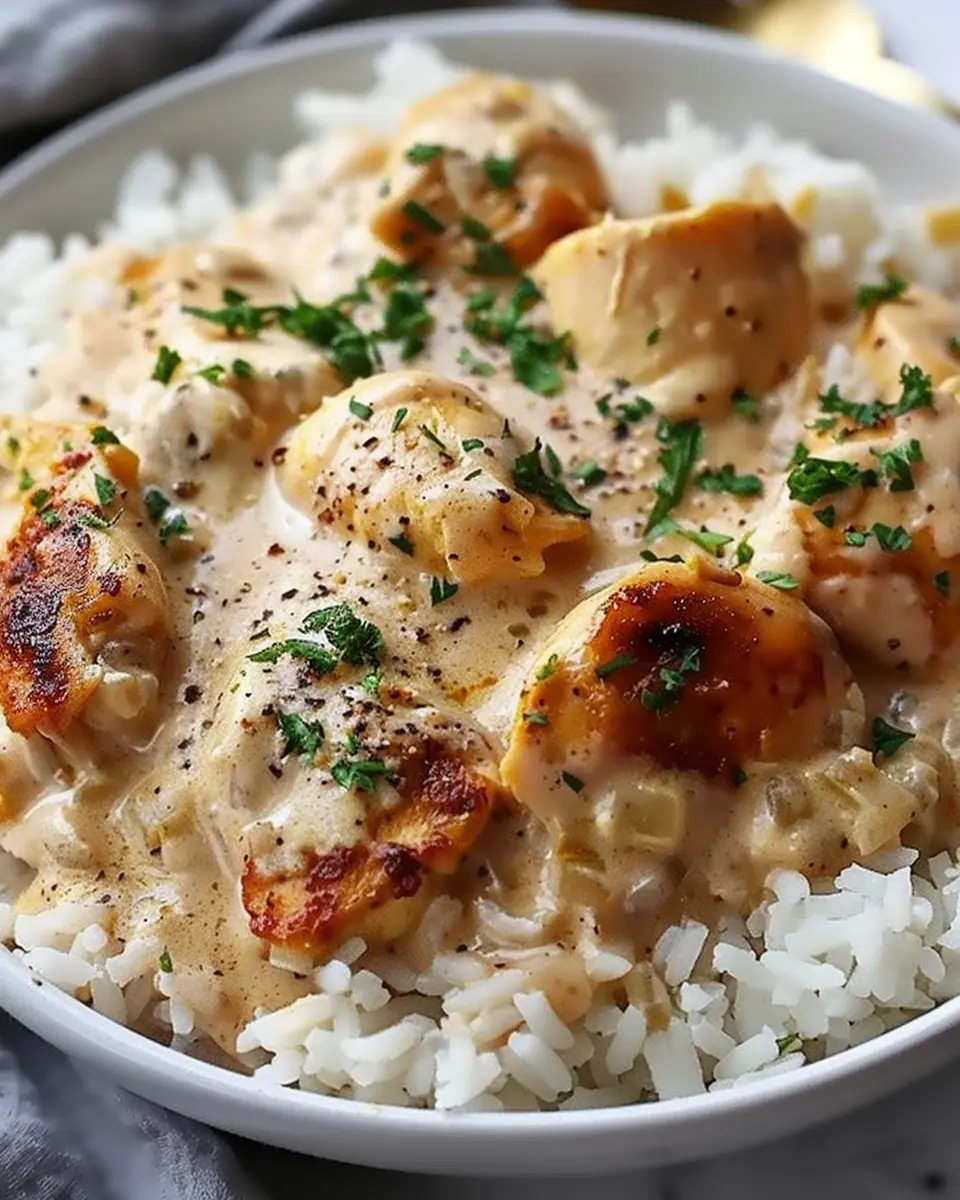 • Plate it Up: Spoon a generous portion of rice onto a plate, then top with that creamy chicken and sauce. Feel free to garnish with some fresh herbs for an extra pop of flavor.