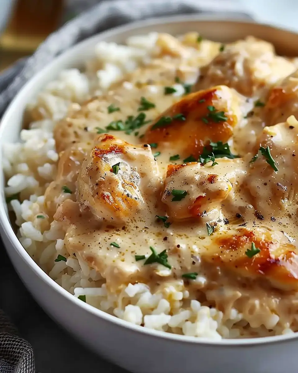 • Plate it Up: Spoon a generous portion of rice onto a plate, then top with that creamy chicken and sauce. Feel free to garnish with some fresh herbs for an extra pop of flavor.