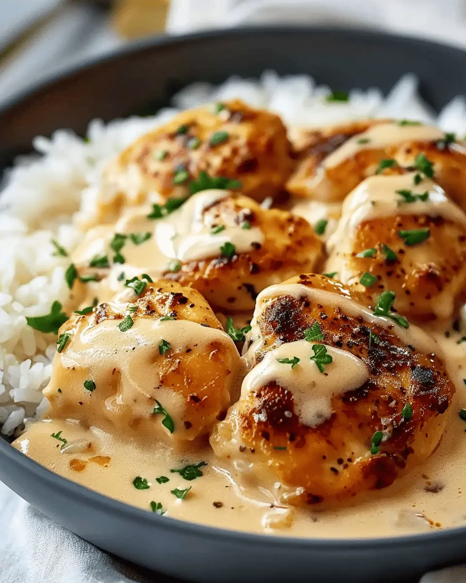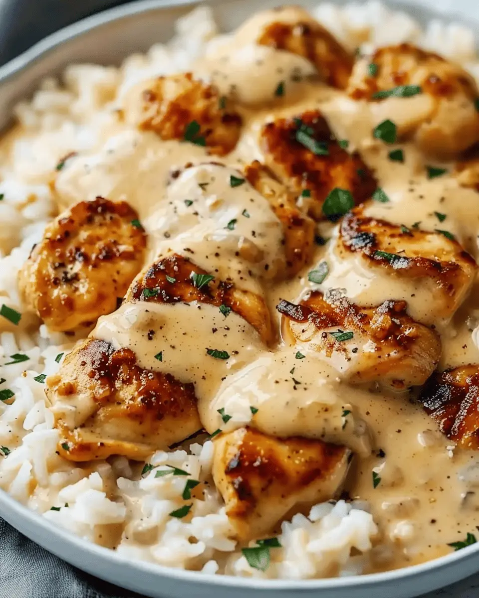Creamy Smothered Chicken and Rice is a comforting dish that combines tender chicken with rich, creamy rice for a delightful meal.