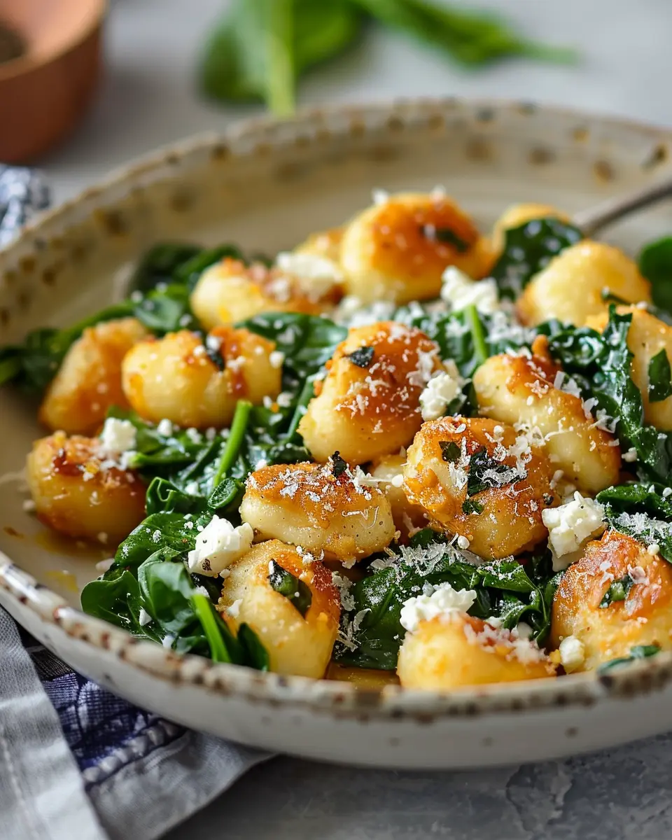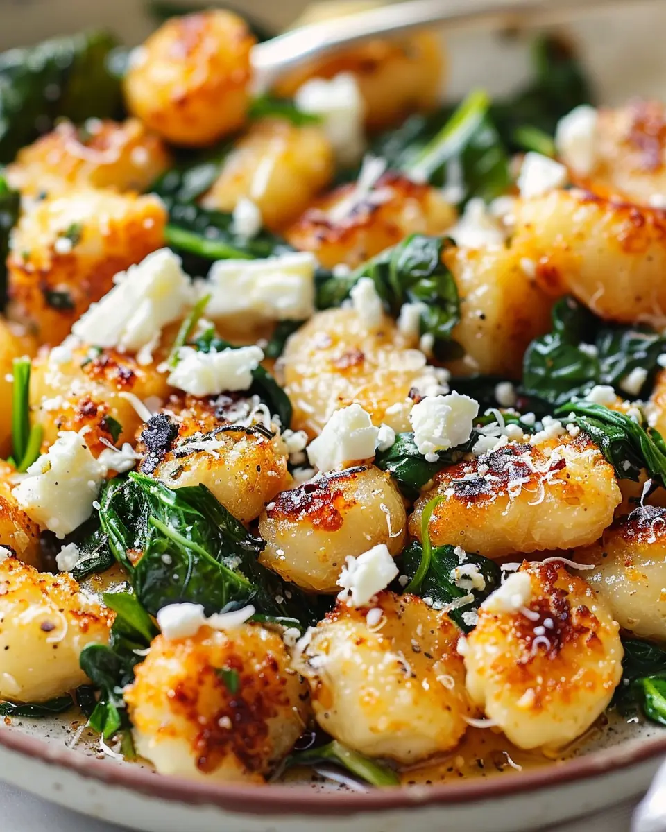 A delightful and easy recipe for crispy gnocchi paired with spinach and feta, perfect for a quick meal.