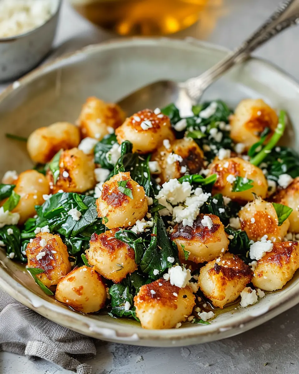 Introduction to Crispy Gnocchi with Spinach and Feta