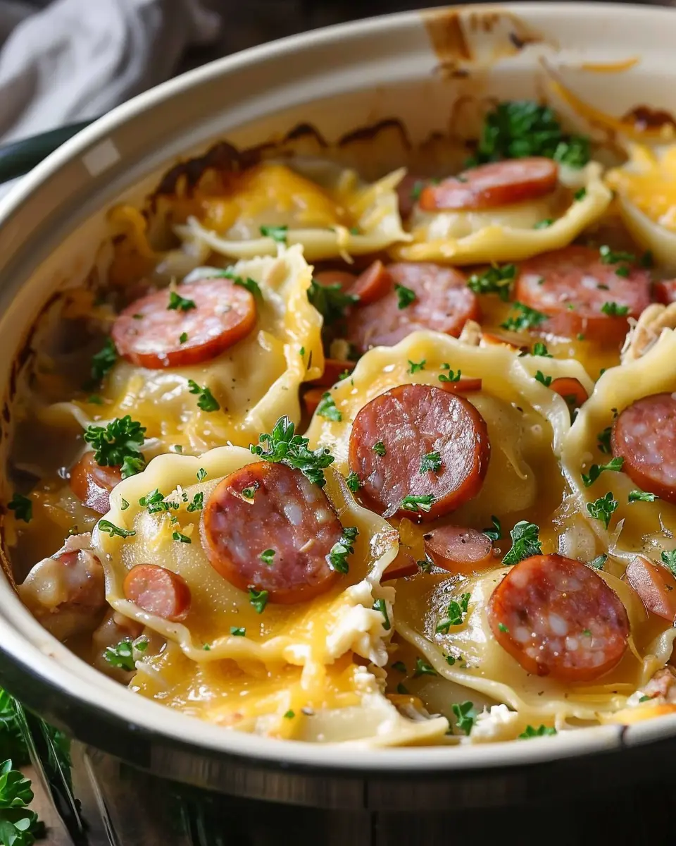 A delicious and simple recipe for a hearty Crock pot Pierogi Casserole with Kielbasa, perfect for comfort food lovers.