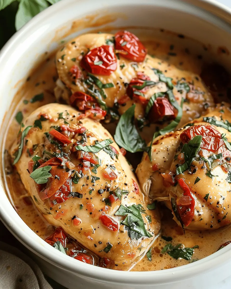 The creamy sauce is what truly elevates Crockpot Tuscan Chicken to another level.