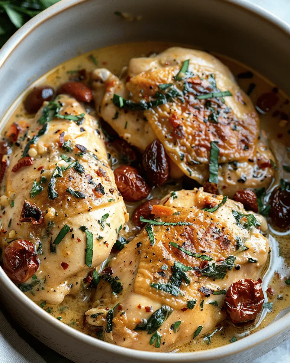 - Add Sun-dried Tomatoes: Stir in the sun-dried tomatoes about 20-30 minutes before serving to let their flavors meld perfectly with the chicken.