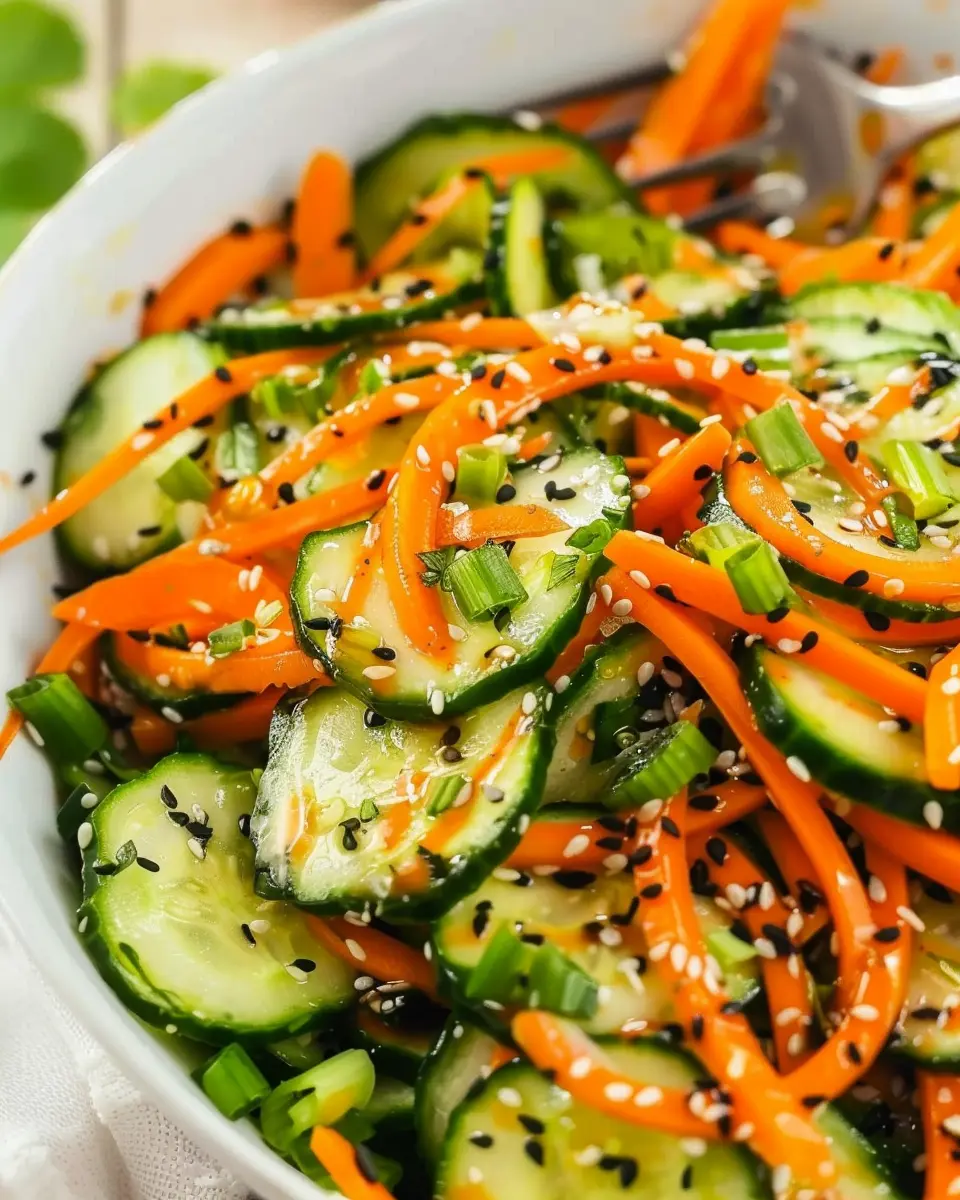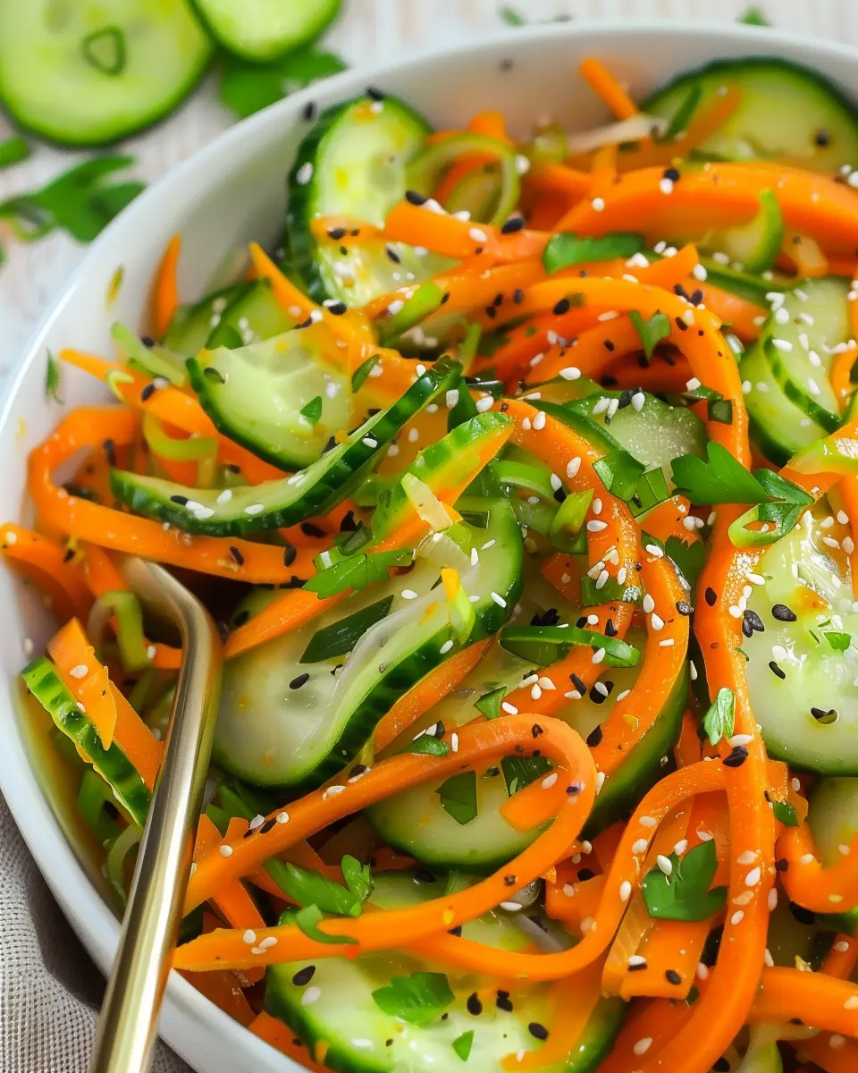 A vibrant and crunchy salad featuring fresh cucumbers and carrots, perfect for a light meal or a side dish.