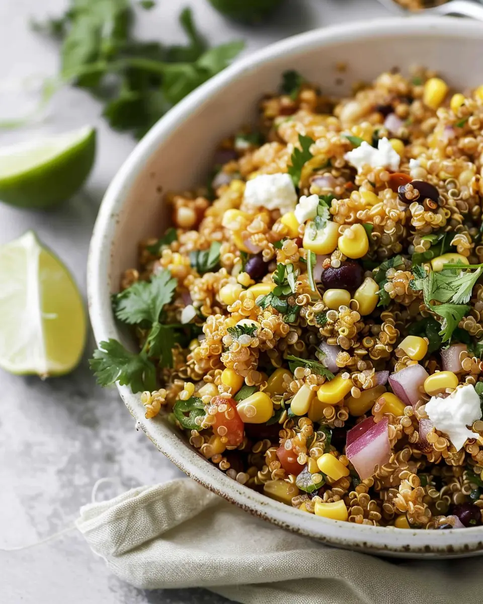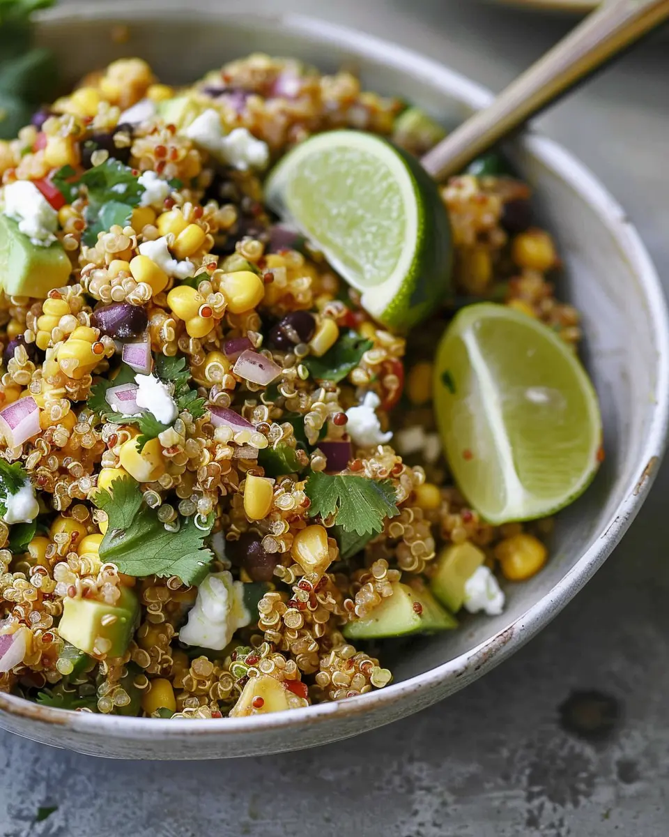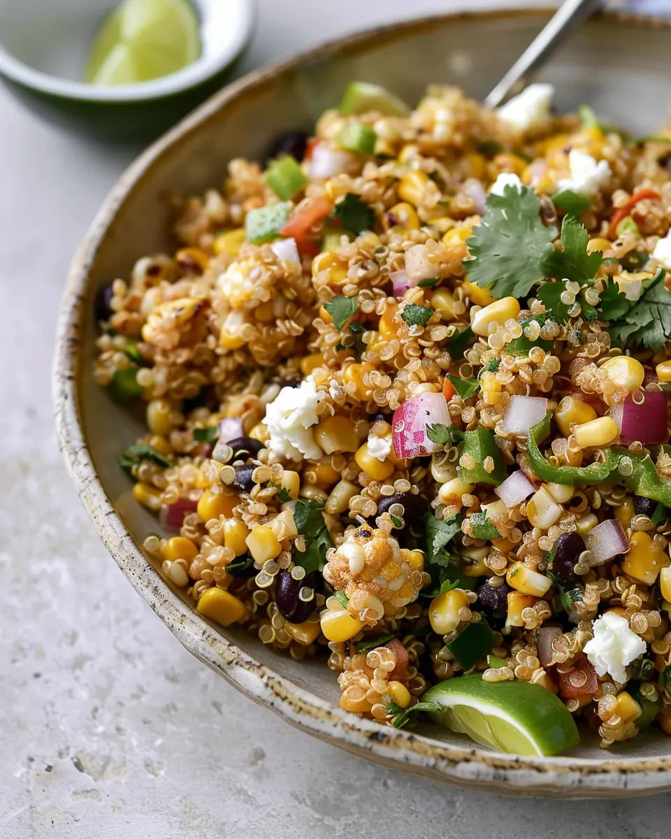 A refreshing and flavorful dairy-free quinoa salad inspired by Mexican street corn.