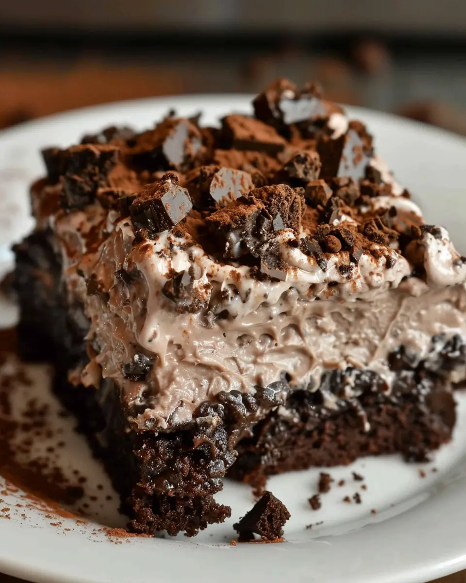 Next, pour in the chocolate pudding mixture, smoothing it out evenly. Top this with the remaining whipped topping, creating a luscious, fluffy layer. Finally, sprinkle the crushed Oreo cookies on top for that “dirt” effect, and if you’re feeling playful, toss in some gummy worms to elevate the theme!