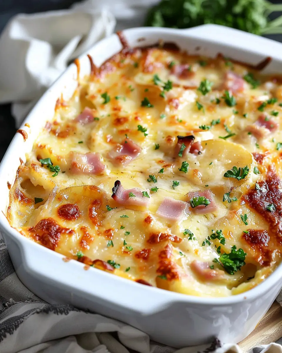 easy Au Gratin Potatoes and Ham: A Creamy Comfort Dish with Turkey Bacon