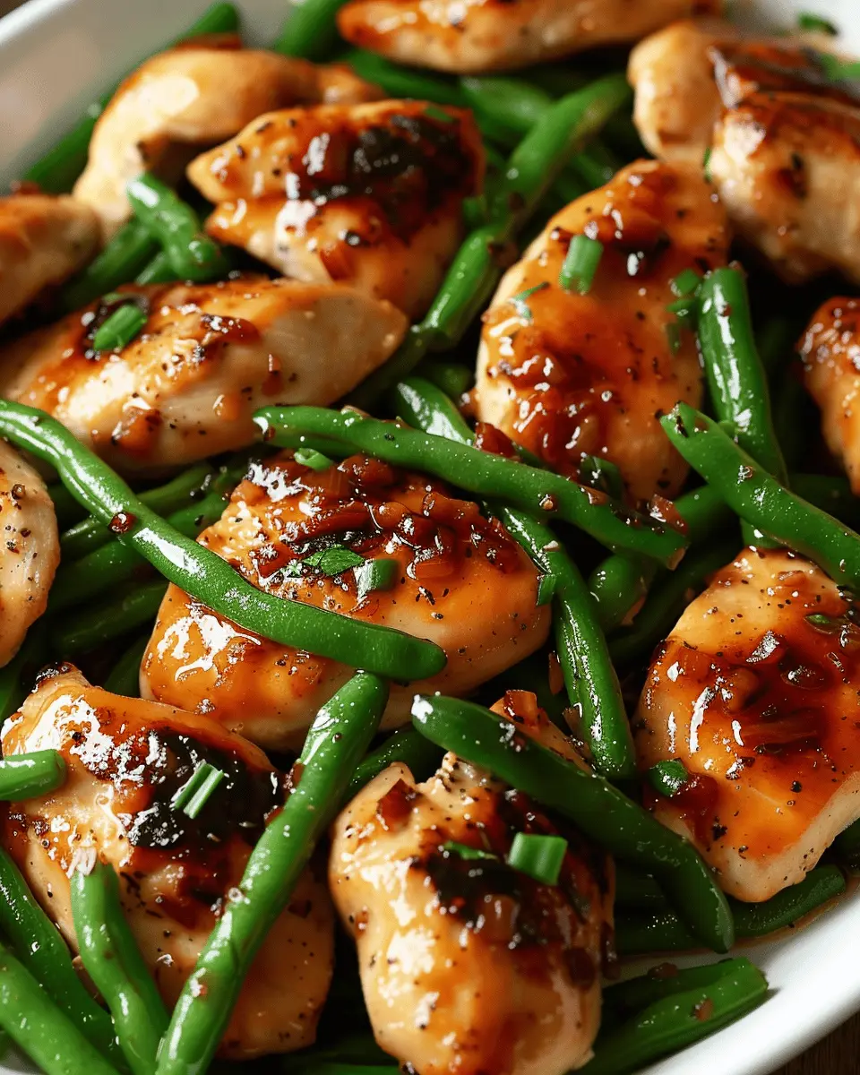 As the sauce thickens, you’ll see the chicken and green beans glistening with flavor, making it hard to resist!