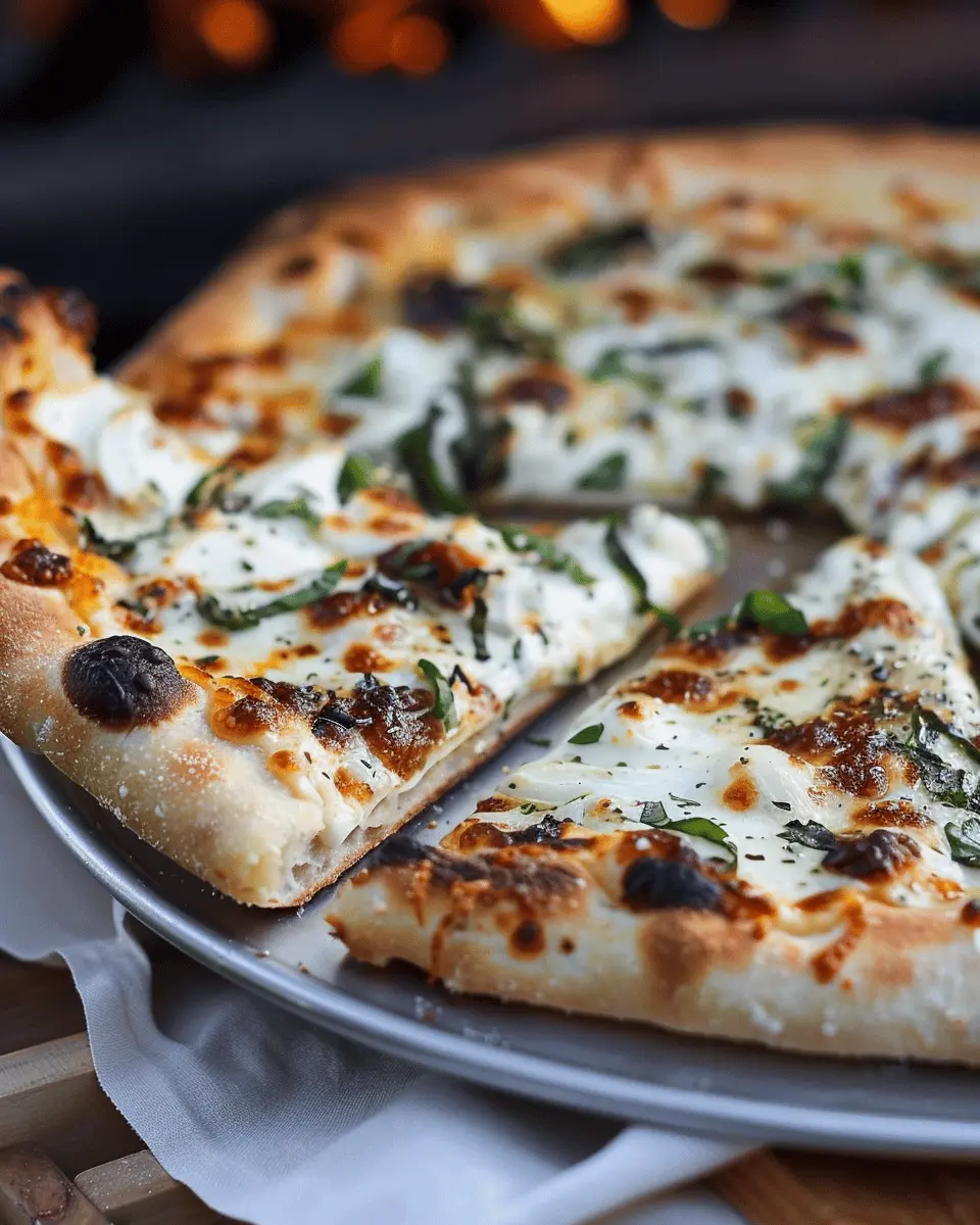To round out your meal, consider serving your pizza with a refreshing side salad or some garlic knots. A crisp arugula salad dressed with lemon vinaigrette offers a bright contrast to the creamy sauce, making it a fantastic accompaniment. Alternatively, a warm bowl of marinara sauce for dipping those garlic knots creates a satisfying and cozy experience.
