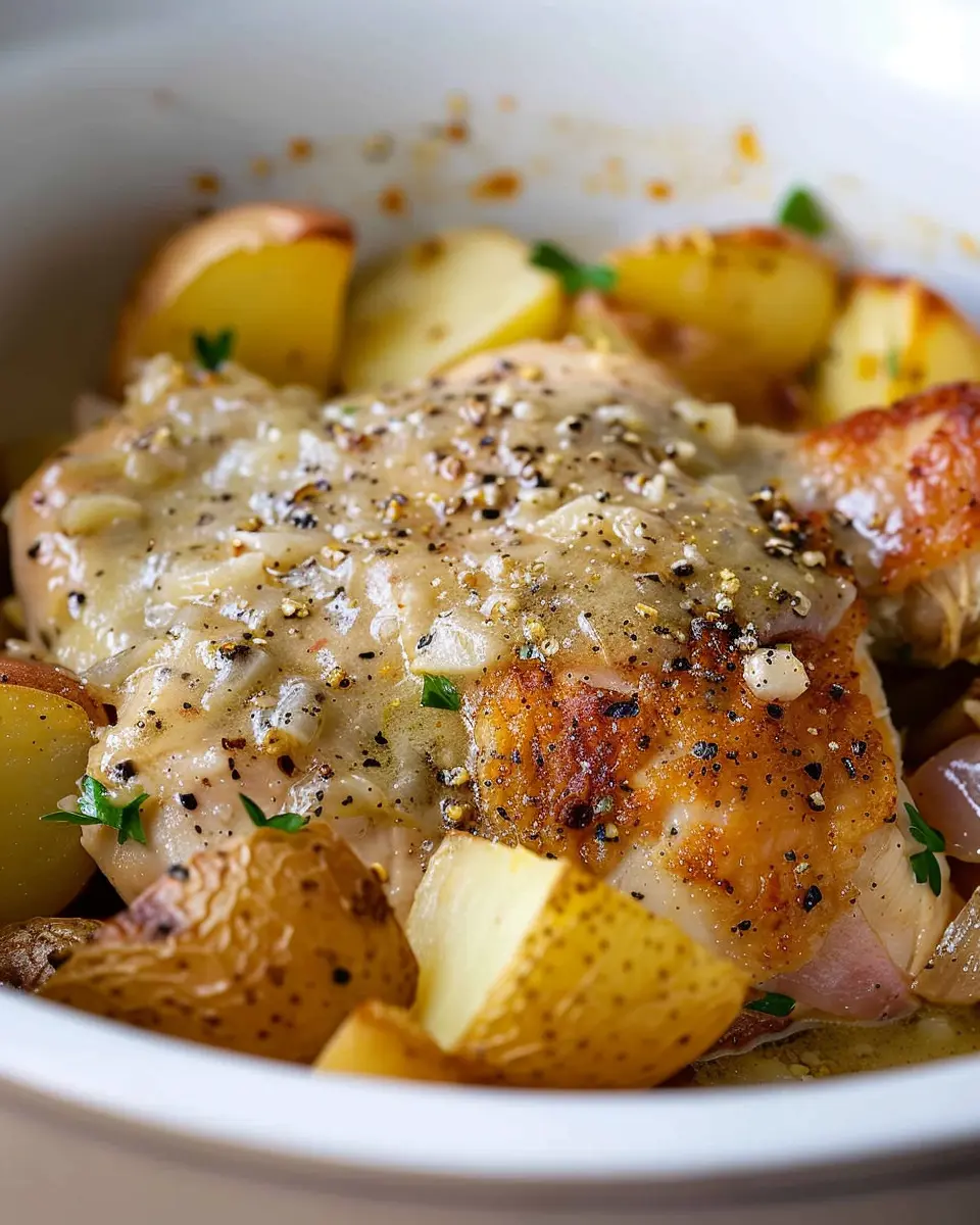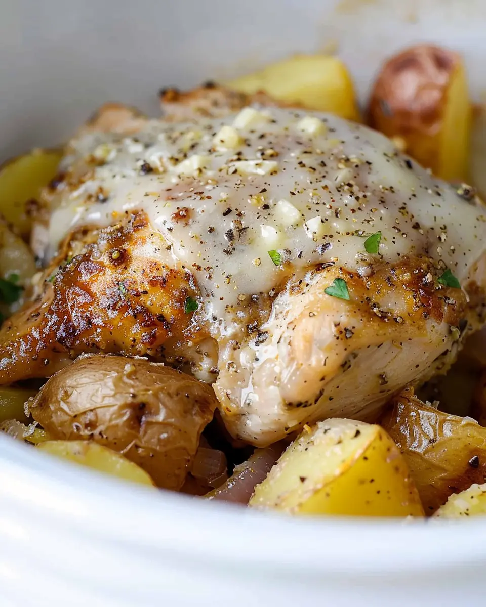 PrintEasy Slow Cooker Parmesan Garlic Chicken and Potatoes Recipe Delight
