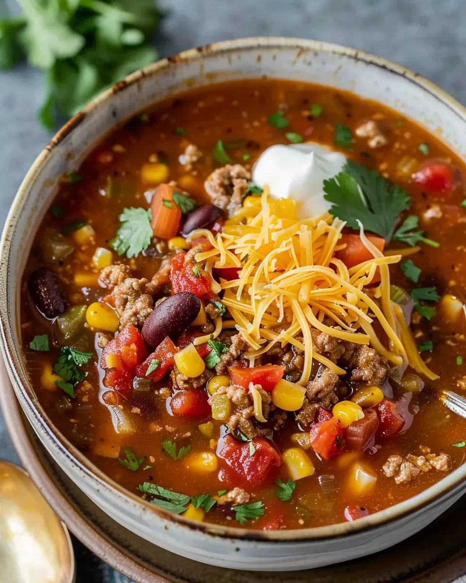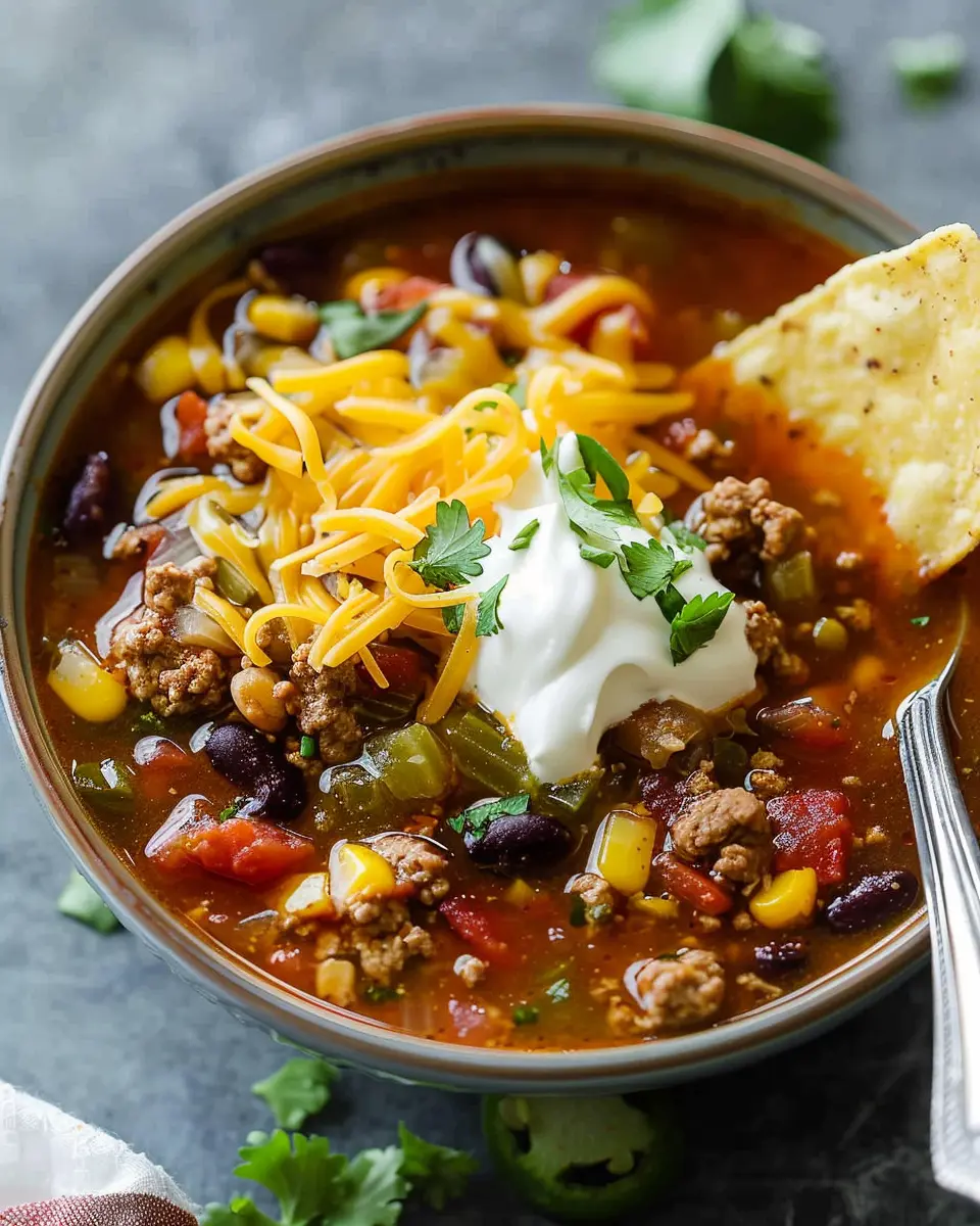 PrintEasy Taco Soup: A Delightfully Hearty Recipe with Turkey Bacon and Chicken Ham
