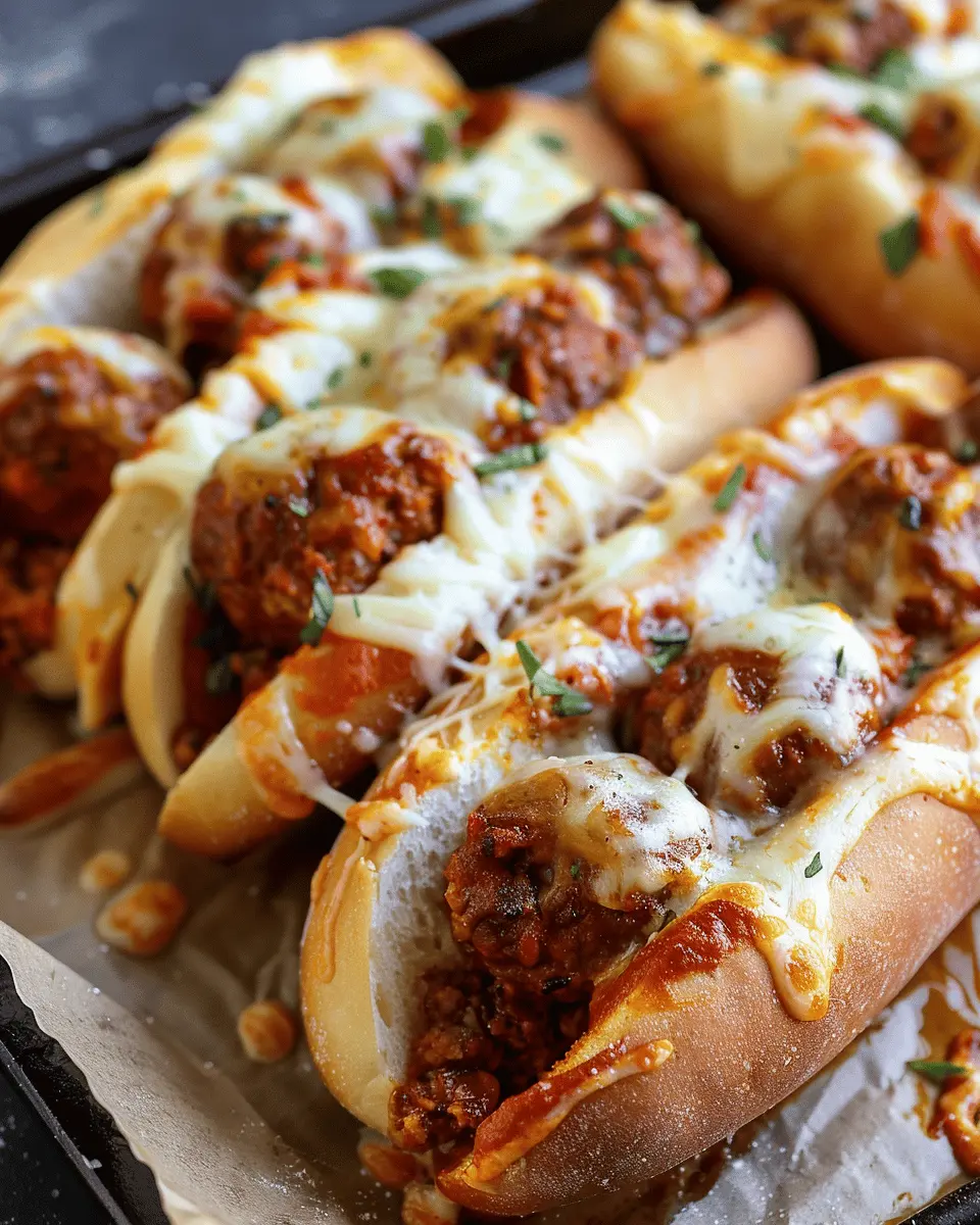 - Place a few meatballs on each sub, top them with a generous spoonful of marinara sauce, and sprinkle shredded mozzarella on top.