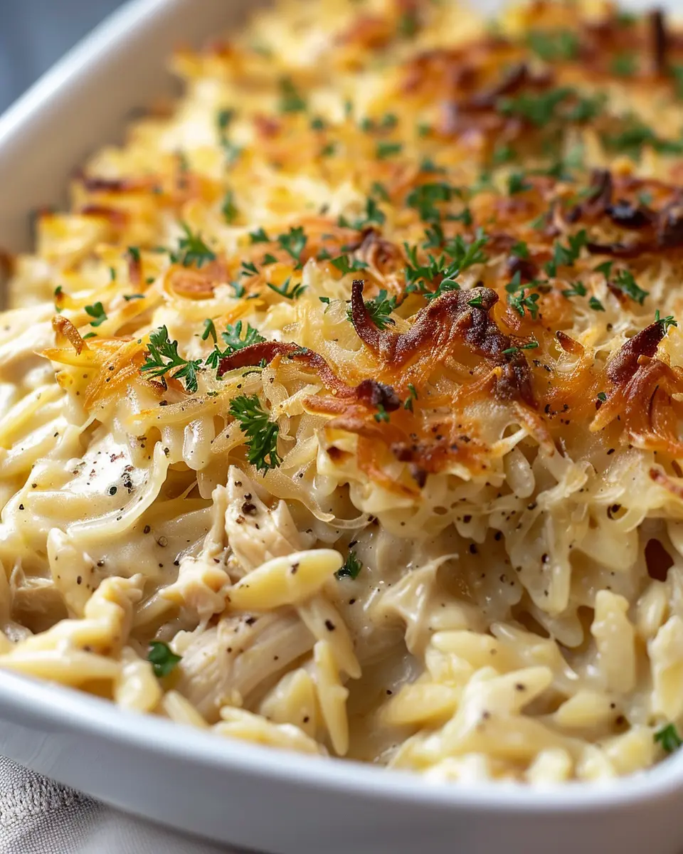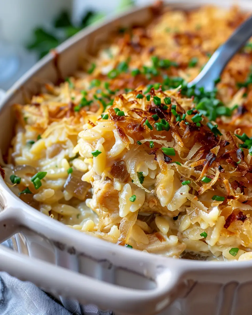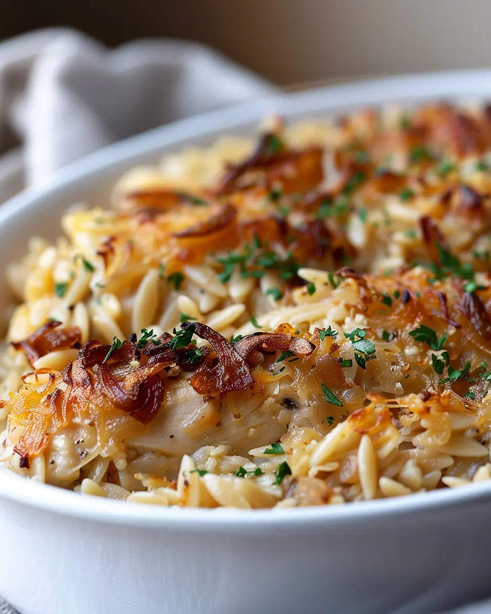 French Onion Chicken Orzo Casserole: Easy Comfort Food Delight