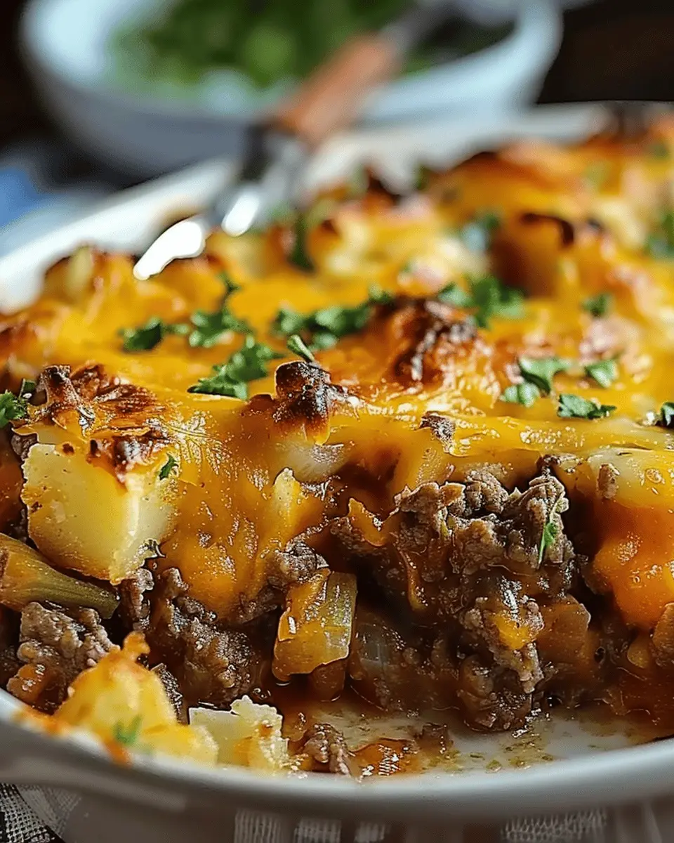 Once it’s done, let it cool for a few minutes before diving in. The layers will meld perfectly together, creating a delightful meal that feels like a warm hug on a plate.