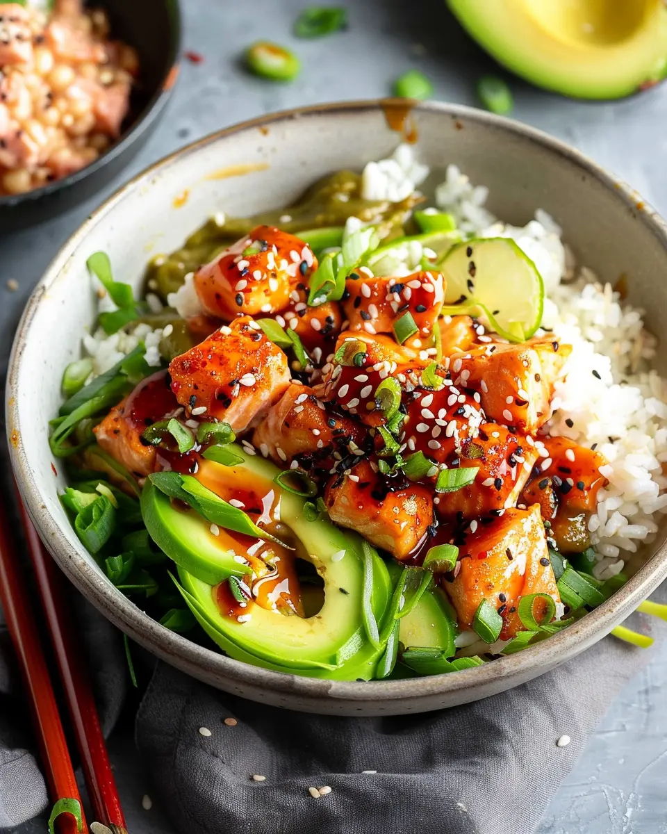 Elevate your Honey Sriracha Salmon Bowls with a refreshing tropical twist! Consider tossing in juicy pineapple and mango chunks. Their natural sweetness beautifully complements the spicy-salty profile of the salmon, creating a well-rounded dish that’s perfect for summer or any time you want to feel like you’re on a beach getaway.